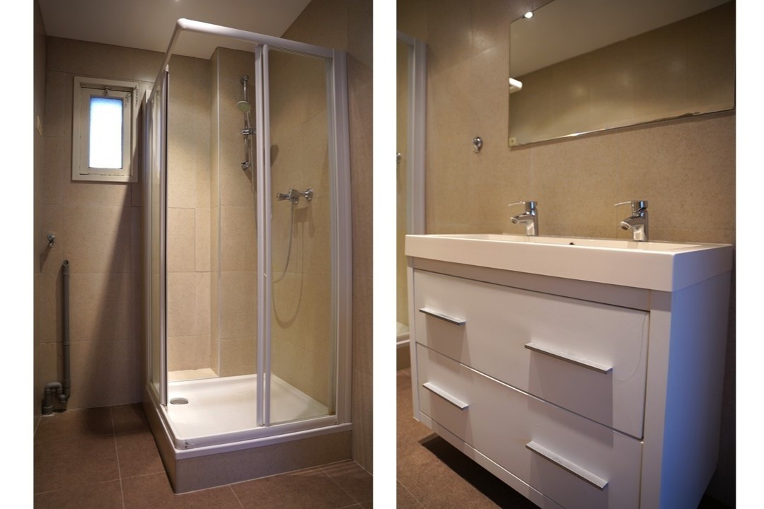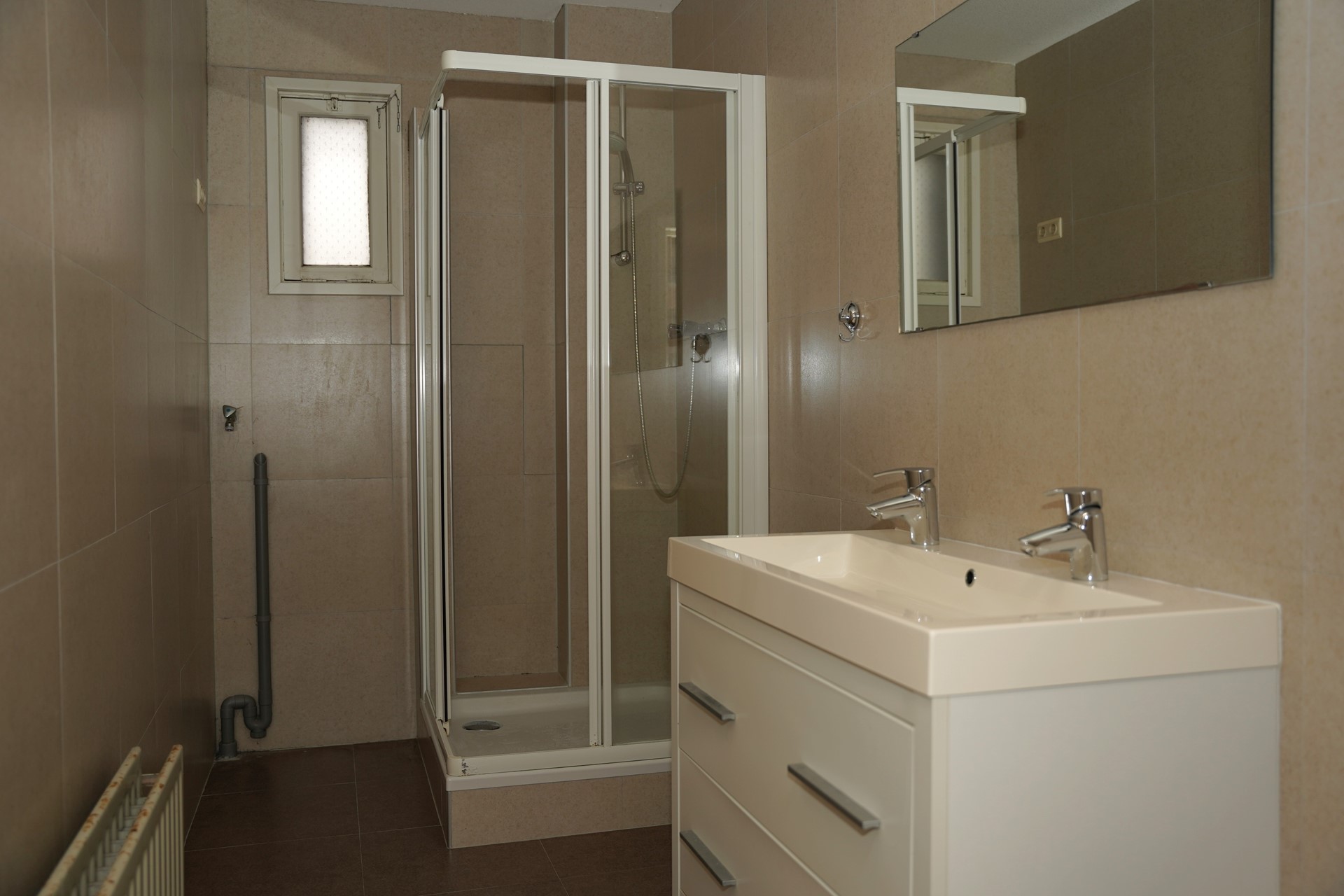 Via de gezamenlijke entree bereik je de woning op de eerste verdieping. De hal geeft toegang tot het toilet en leidt door naar de verschillende vertrekken. De woonkeuken is standaard en voorzien van alle gemakken: een koelkast, keramische kookplaat, oven en afzuigkap. Hier kun je heerlijk koken en gezellig tafelen. De lichte woonkamer beschikt over grote raampartijen die zorgen voor een prettige natuurlijke lichtinval. In de woonkamer bevindt zich ook de meterkast. De ruime slaapkamer biedt volop plek voor een tweepersoonsbed en kastruimte. Aangrenzend vind je de badkamer, uitgerust met een douchecabine, dubbel wastafelmeubel en aansluitingen voor wasmachine en droger – alles wat je nodig hebt voor comfortabel wonen.