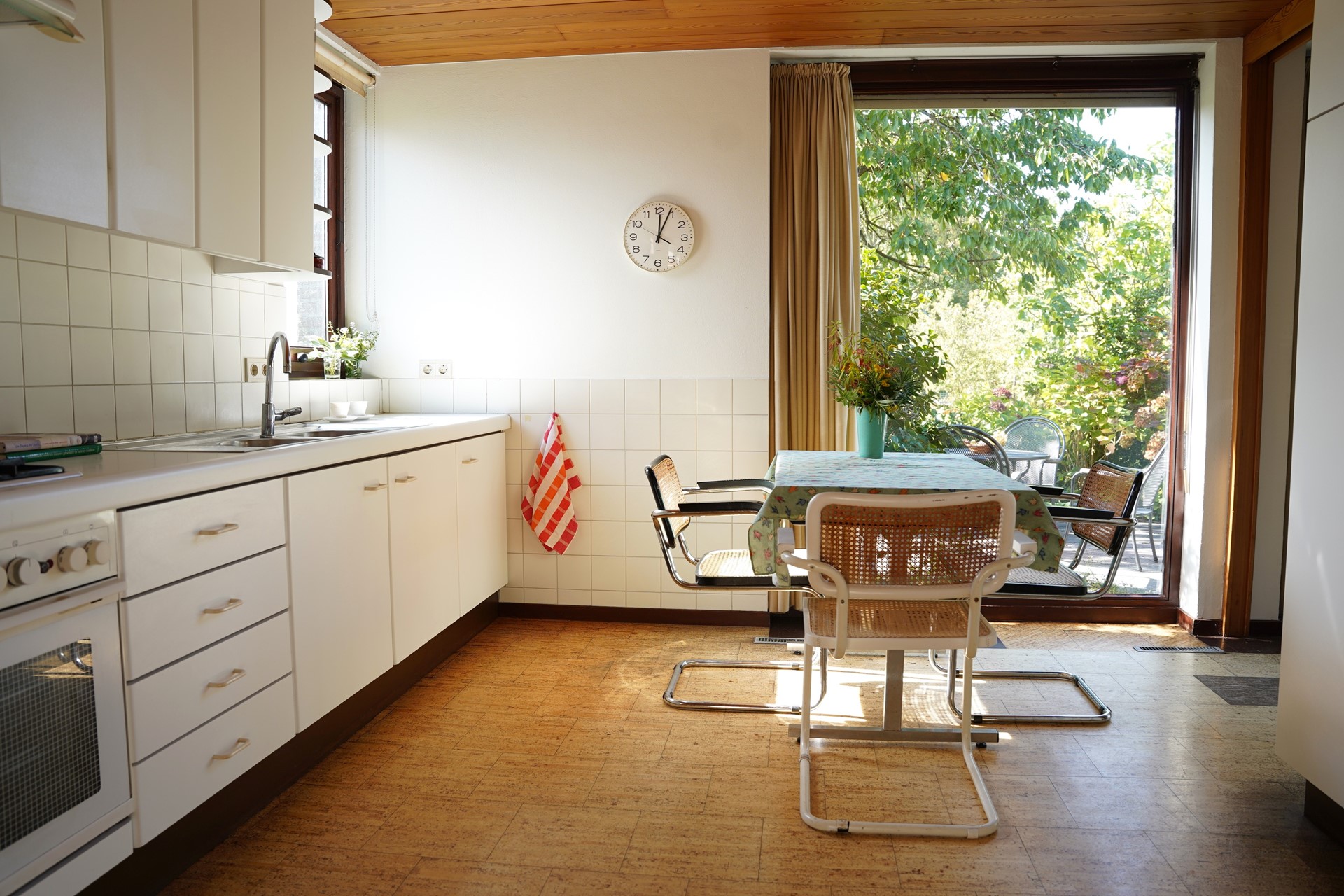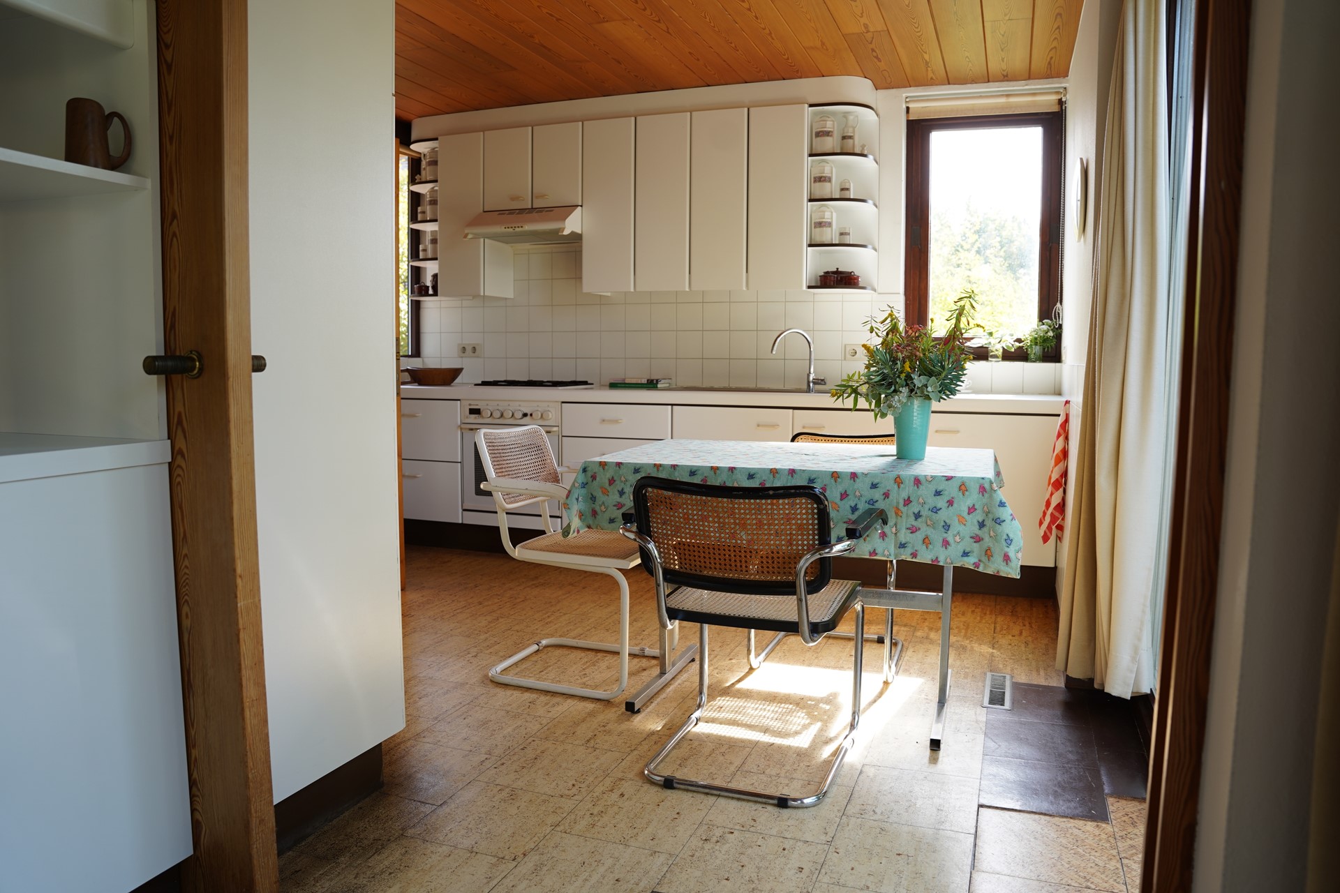 Via de entree aan de zijkant kom je in een ruime hal met meterkast, toilet en trapopgang. Op deze woonlaag bevindt zich de eerste tweepersoons slaapkamer en een eigen badkamer met douche, wastafelmeubel en 2e toilet. De woonkamer is sfeervol afgewerkt met kurkvloer en openslaande tuindeuren naar de tuin. De slim geplaatste ramen in deze ruimte zorgen voor een mooie lichtinval gecombineerd met een fantastisch uitzicht. Dankzij de schuifdeur naar de keuken blijft het open karakter behouden, terwijl je toch wat privacy hebt tijdens het koken. Liever een open “eiland keuken”? Dit is met een eenvoudige ingreep te realiseren. De (woon)keuken zelf is royaal en voorzien van diverse apparatuur.