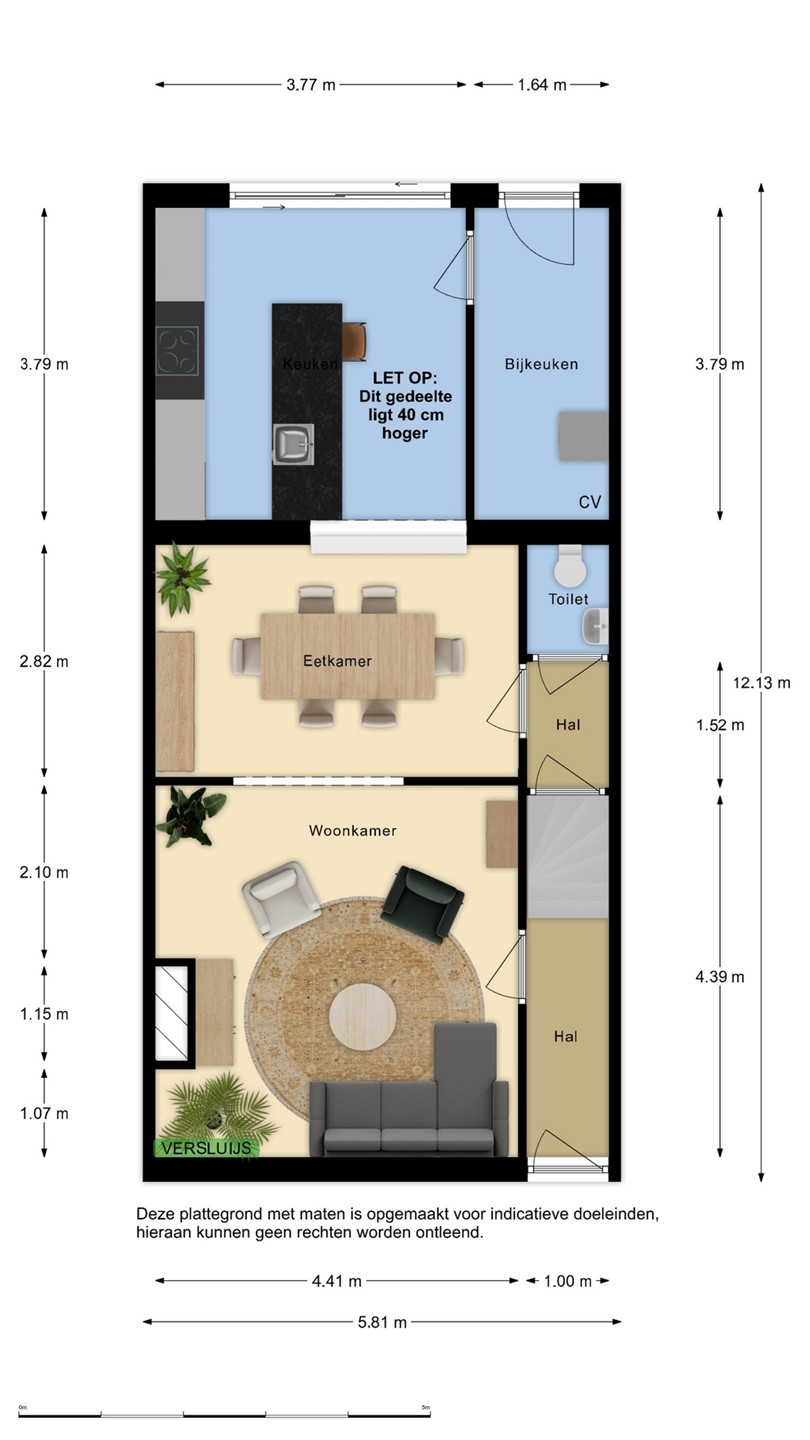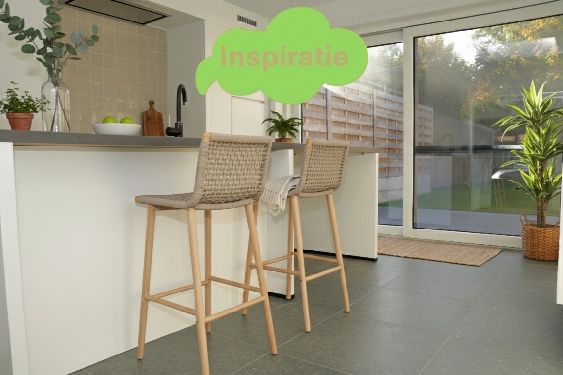 Stap binnen in de hal, waar zich de meterkast bevindt en de trap naar de verdieping je uitnodigt om het huis verder te ontdekken. Vervolgens kom je in de uitnodigende, lichte woonkamer waar je direct een gevoel van ruimte ervaart. Aansluitend loop je de eetkamer in. Beide ruimtes zijn voorzien van strakke wand- en vloerafwerking die het geheel een eigentijdse uitstraling geven. Of je nu houdt van een rustige basis of een wat meer kleurrijk interieur, deze ruimte past zich moeiteloos aan jouw smaak aan. Naast de eetkamer bevindt zich nog een extra halletje waar zich het toilet bevindt. Vanuit de eetkamer kom je via twee treden in de iets hoger gelegen aanbouw. Hier vind je de moderne woonkeuken met spoeleiland en een bartafel. Voorzien van alle eigentijdse apparatuur is koken hier een plezier. De lichtkoepel en de schuifpui zorgen voor een zee van daglicht. Tenslotte is er nog een handige bijkeuken met toegang naar de tuin, de cv ketel, een extra groepenkast en de aansluiting voor de droger en de wasmachine.