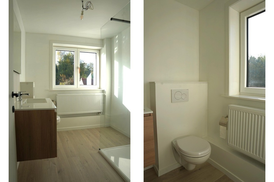 De overloop biedt toegang tot 3 slaapkamers en de badkamer. Eén van de slaapkamers is voorzien van een dakkapel. De splinternieuwe badkamer is voorzien van een inloopdouche, een wastafelmeubel en een 2e toilet. Alle ruimtes op deze verdieping zijn voorzien van mooie laminaatvloeren.
