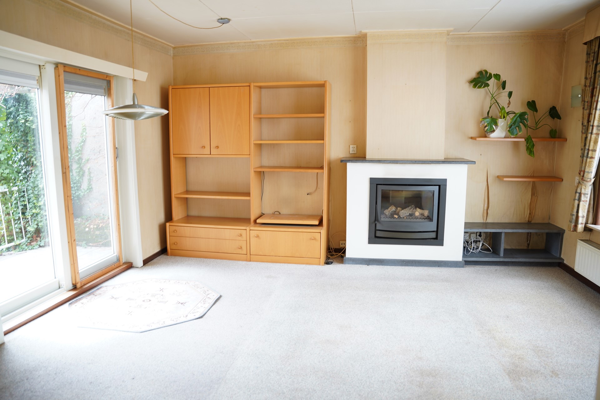 Aansluitend ligt de zitkamer. Deze ruimte is opvallend licht en prettig van formaat. De sfeerhaard zorgt voor extra gezelligheid en maakt de ruimte uitnodigend. Dankzij de schuifpui aan de achterzijde staat de woonkamer in direct contact met de tuin. Op mooie dagen zet je de pui open en loopt binnen moeiteloos over in buiten.
