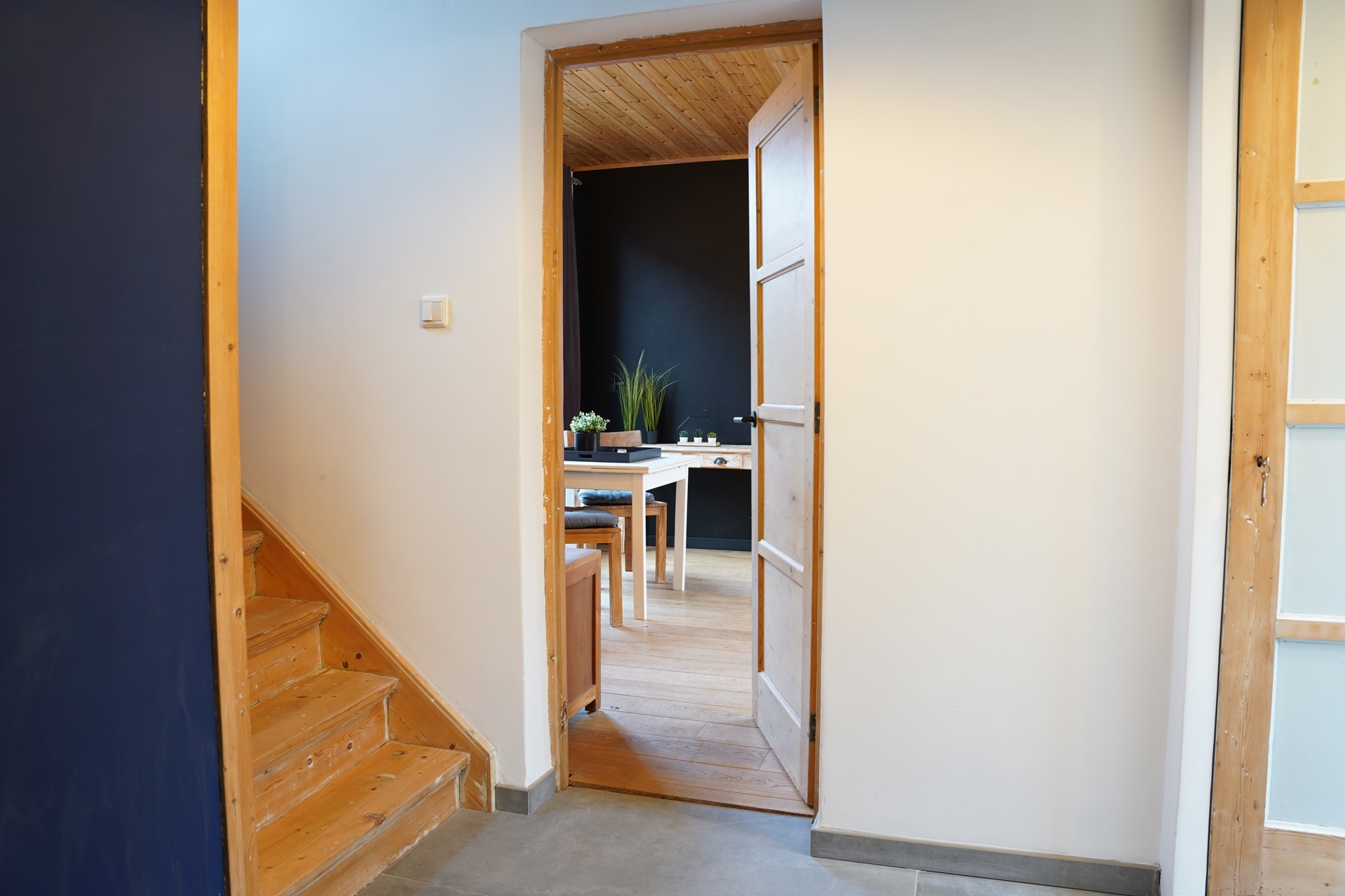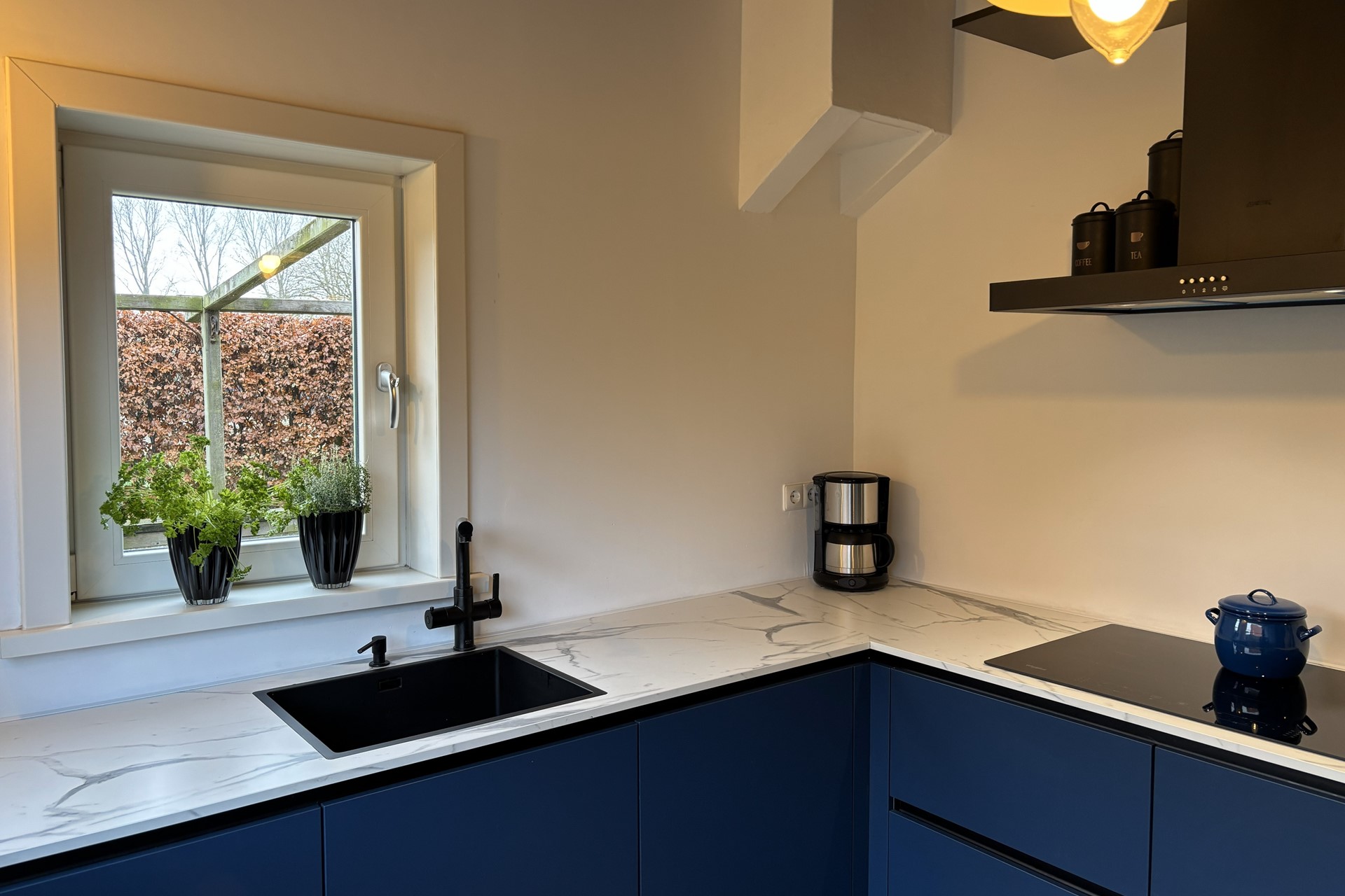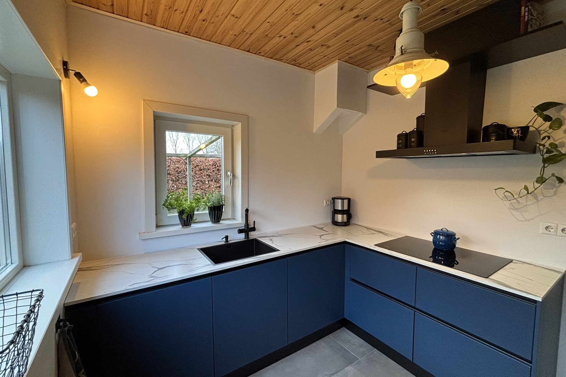 Via de voordeur aan de zijkant van de woning kom je binnen in de hal met een nette tegelvloer. Hier vind je het moderne hangtoilet, de vernieuwde meterkast en de trap naar boven. Vanuit de hal heb je aan weerszijden toegang tot de woonkamer en de keuken. De woonkamer is warm en sfeervol, met houten vloerdelen en voldoende ruimte voor een gezellige zithoek. Er is een plek voorbereid voor een kachel, wat deze ruimte nog extra karakter kan geven. De vernieuwde keuken is verzorgd en compleet uitgevoerd met een vaatwasser, koelkast, kookplaat, afzuigkap en combimagnetron. Om het extra luxe te maken, is er zelfs een Quooker aanwezig. Aansluitend ligt de praktische bijkeuken met dezelfde tegelvloer, een tuindeur naar buiten, aansluitingen voor het witgoed en de opstelling van de cv-ketel. Vanuit hier bereik je ook de kelderkast, ideaal voor extra opslag.