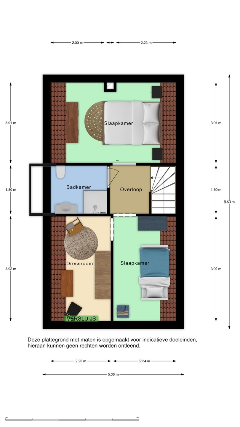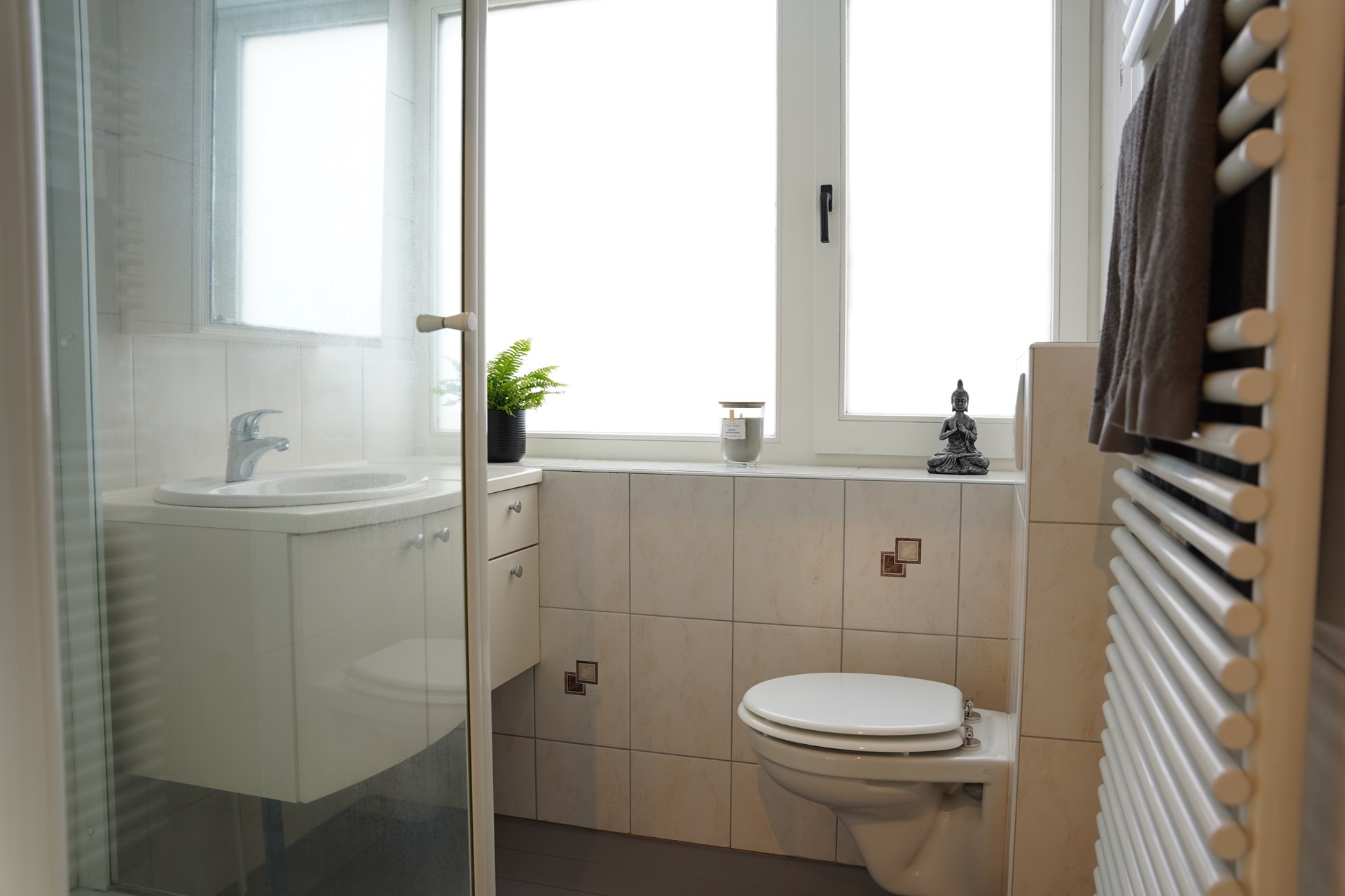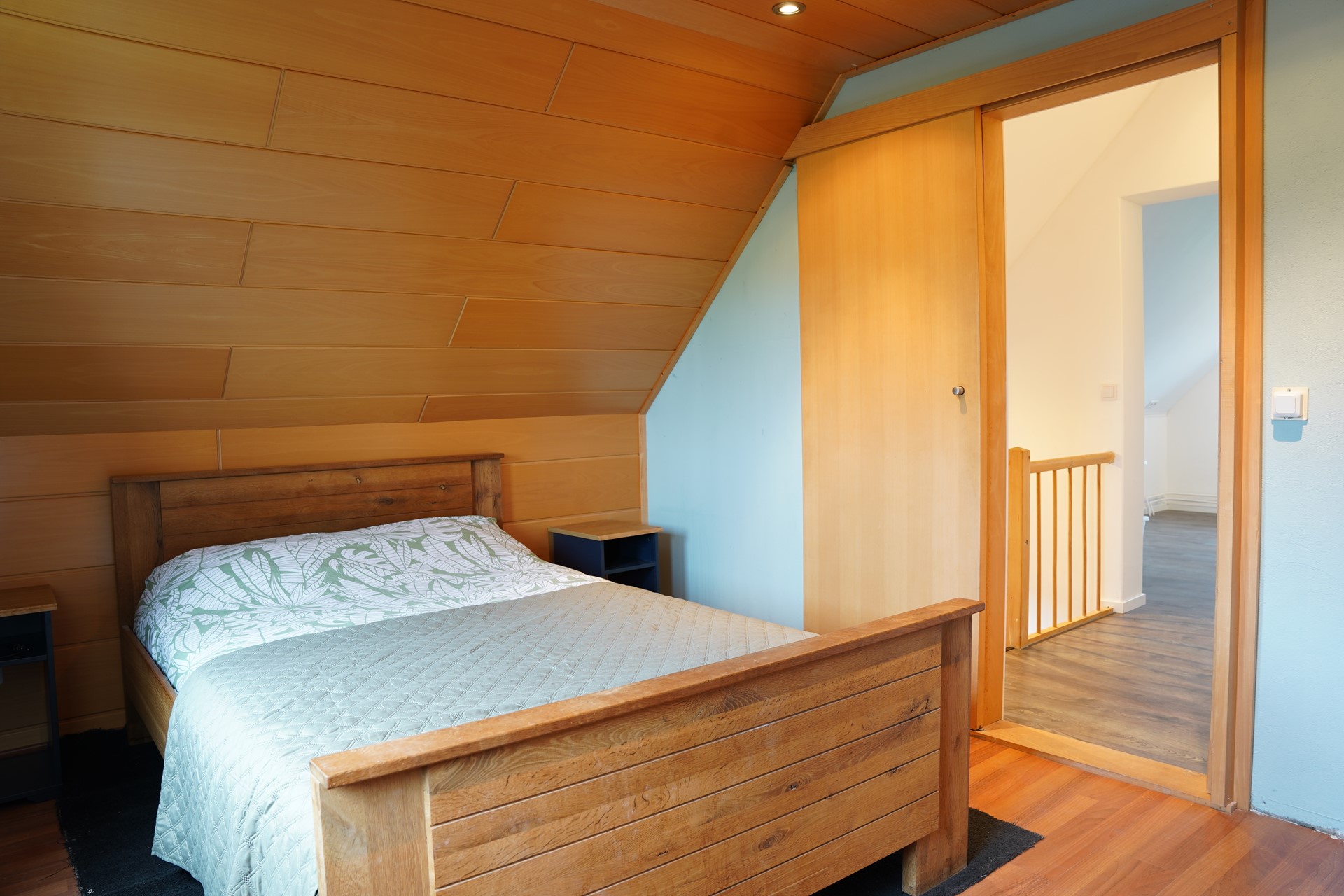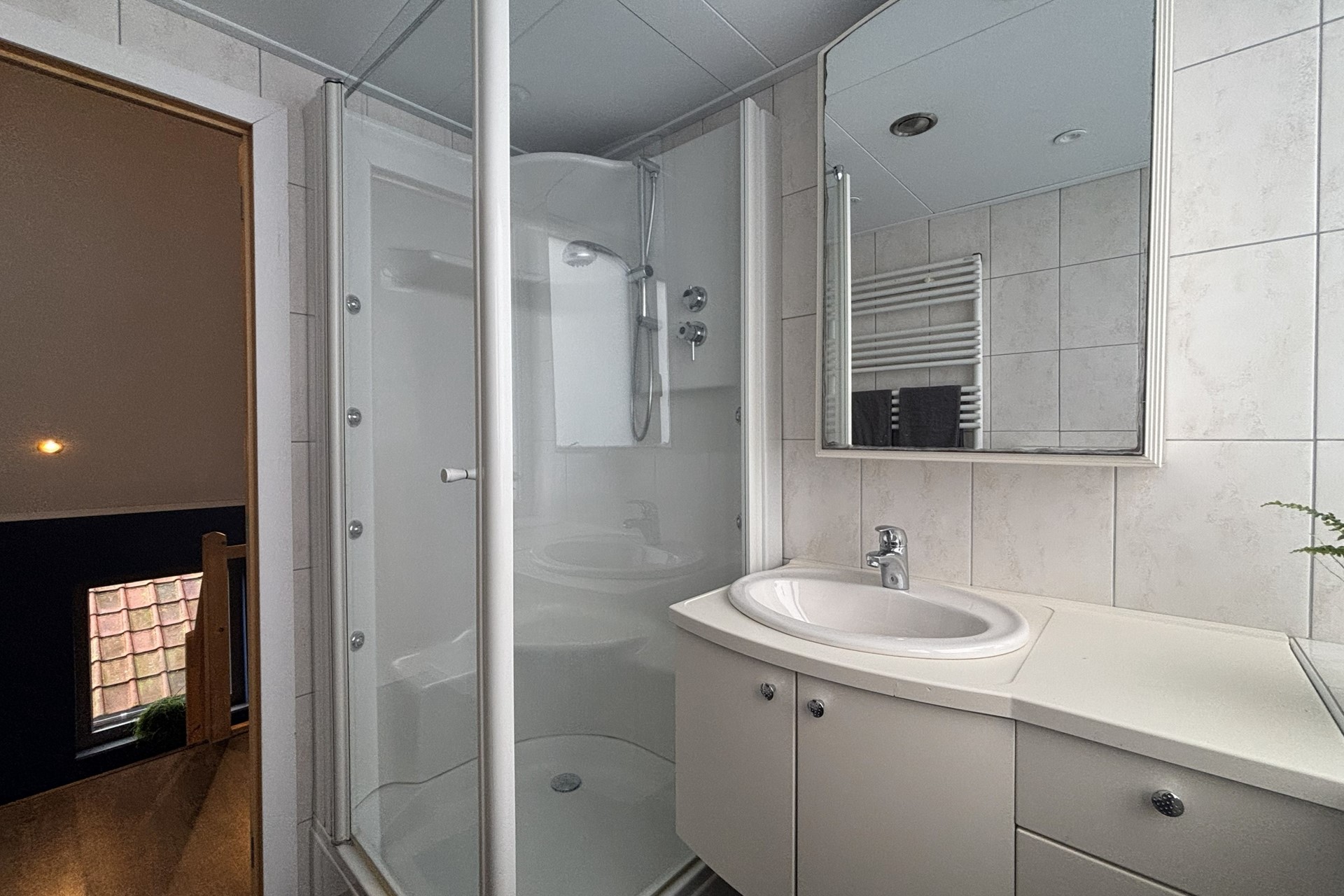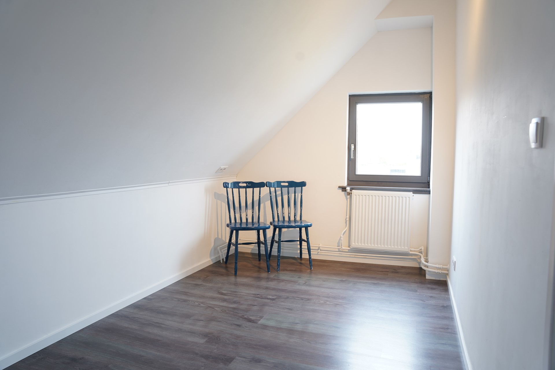 Op de overloop heb je toegang tot drie slaapkamers. De grootste slaapkamer is royaal van formaat. Daarnaast zijn er twee kleinere slaapkamers, waarbij je door de ene kamer naar de andere loopt. Deze ruimtes zijn strak afgewerkt en voorzien van een nieuwe laminaatvloer. De badkamer is verrassend licht dankzij de grote dakkapel en beschikt over een wastafelmeubel, douchecabine en een tweede toilet.