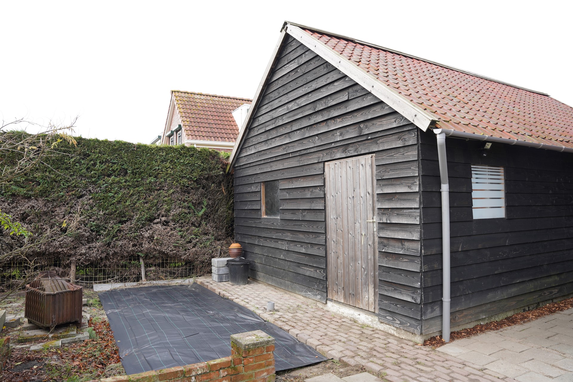 Rondom de woning ligt een fijne tuin met zowel zij- als achtertuin, waar je op elk moment van de dag een plekje in de zon of schaduw vindt. De grote garage ( ca. 8 bij 5 meter) naast de woning is een absolute plus: voorzien van elektra, water en een smeerput, met openslaande deuren aan de voorzijde en een tuindeur aan de achterzijde. Handig is de oprit die voor deze garage ligt. Daarnaast is er een eenvoudig tuinhuisje met licht en elektra.