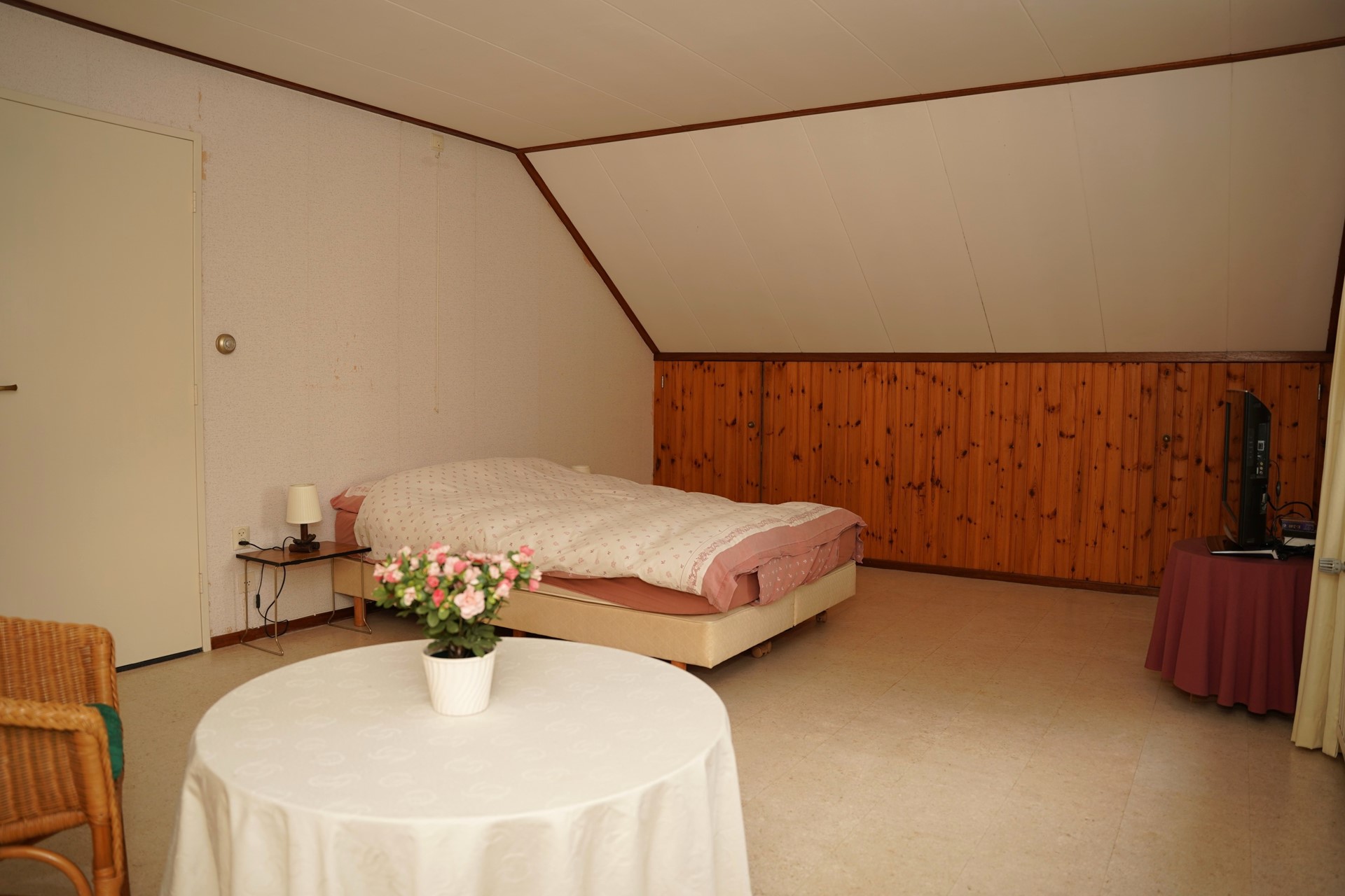 Via een luik in één van de slaapkamers is de zolder bereikbaar met een vlizotrap. De zolder strekt zich uit over de hele woning.