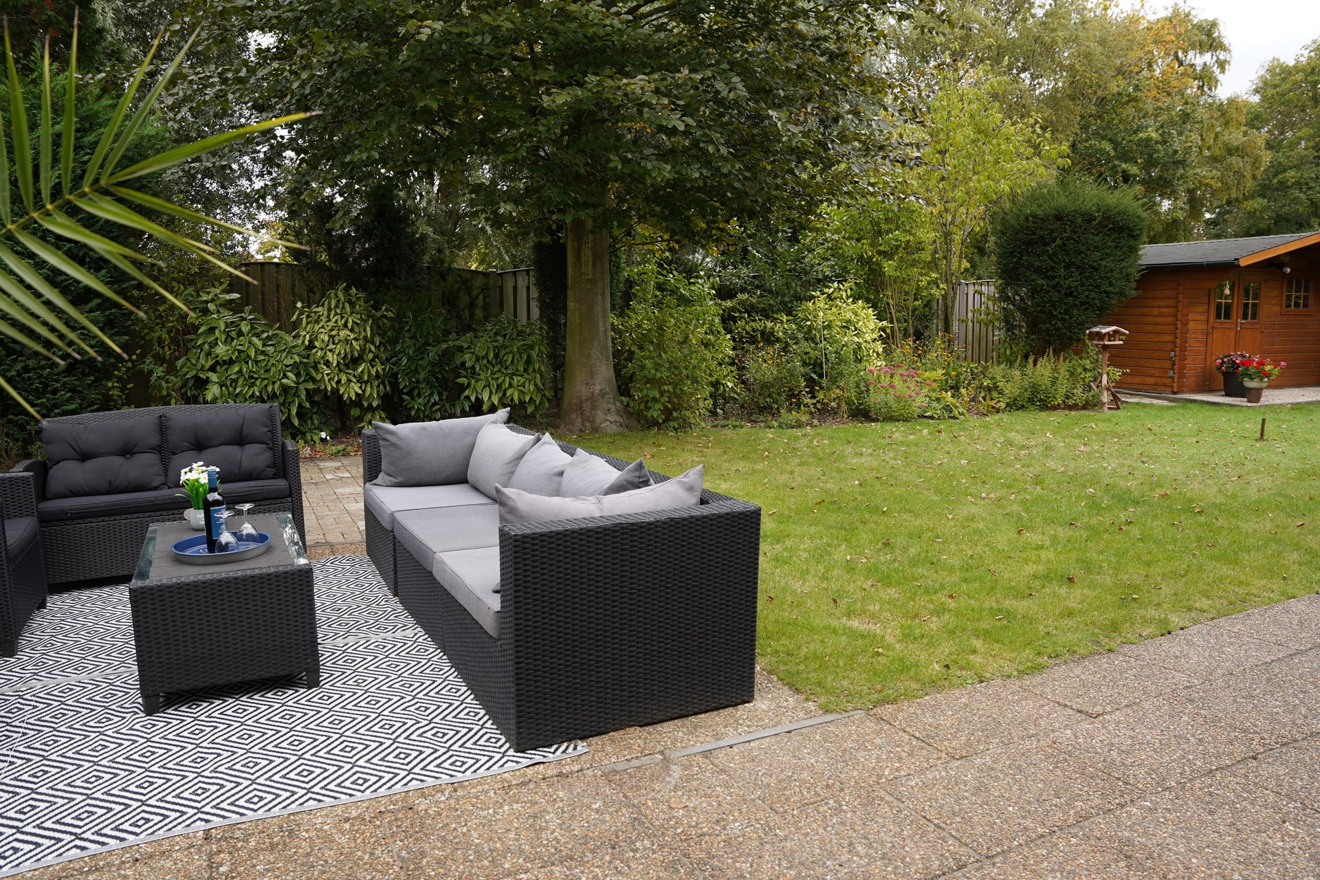 De tuin met zonneterras is fraai aangelegd, heerlijk beschut en biedt veel privacy; je hebt nauwelijks zicht op andere huizen. Er is een achterpoort, een mooi tuinhuis voorzien van elektra en een hout hok. Ook de voortuin is netjes verzorgd en zorgt voor een prettige eerste indruk. Daarnaast is er ook nog een carport én voldoende parkeergelegenheid op eigen terrein.