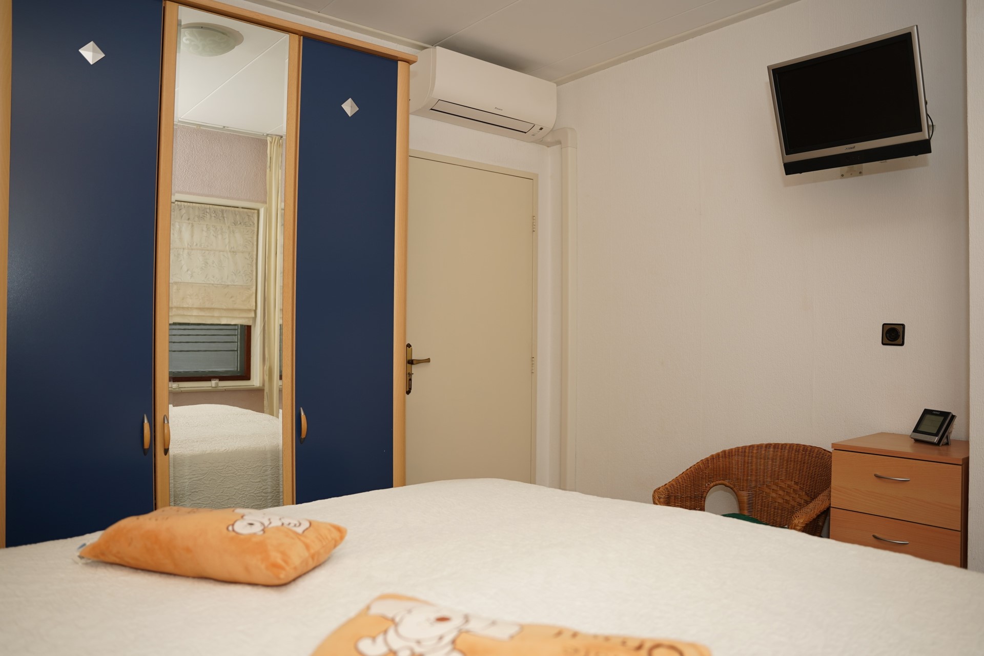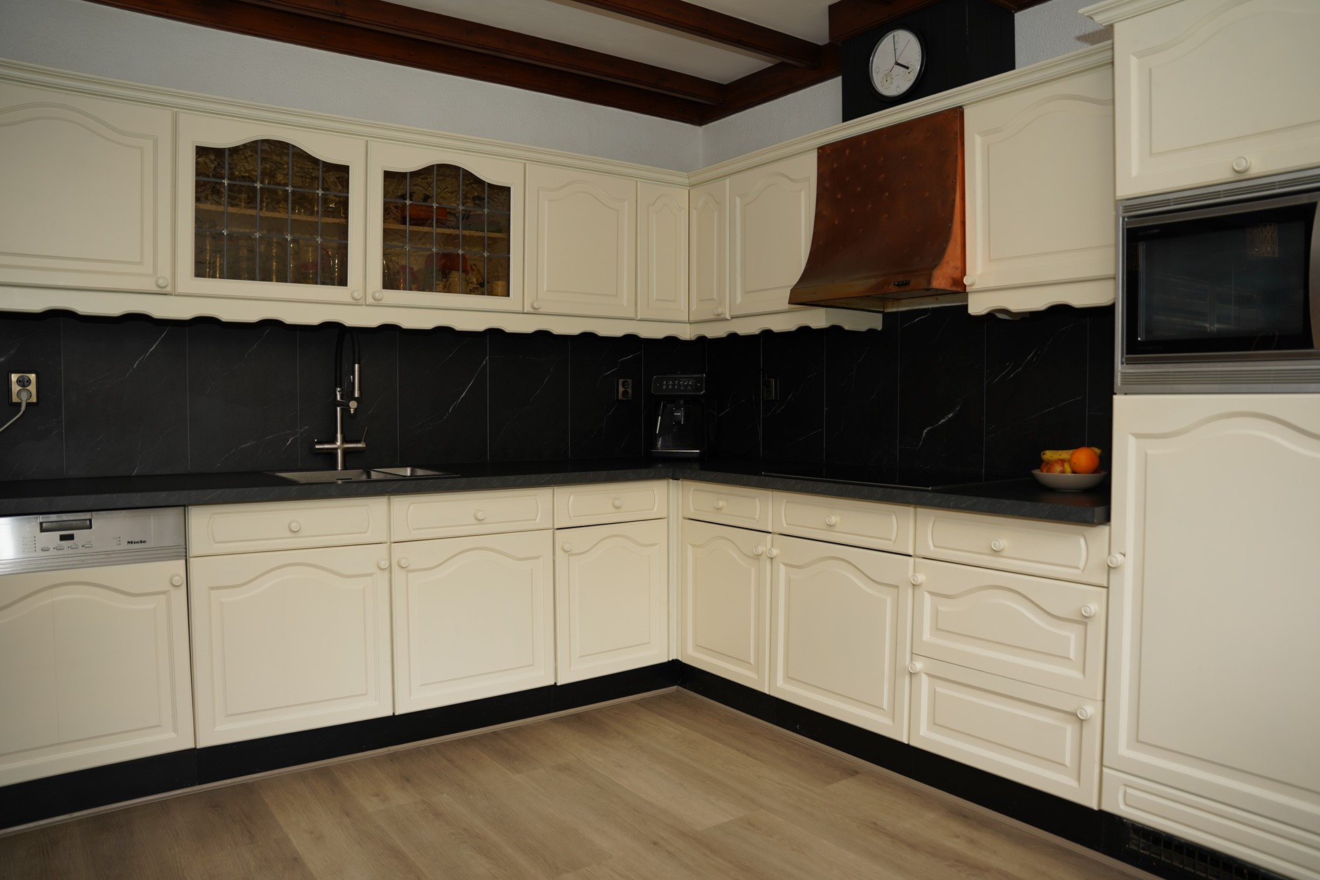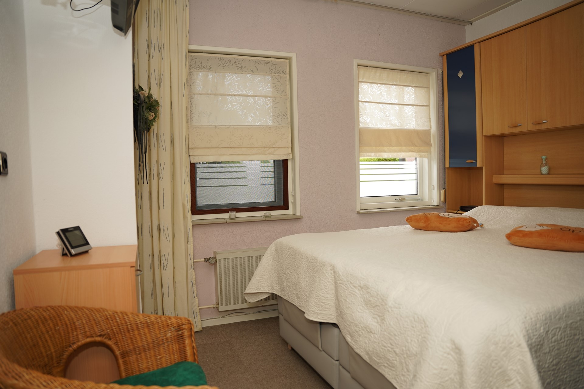 Je komt binnen in de nette, ruime hal met meterkast, toilet en de trap naar de 1e etage. De royale slaapkamer op de begane grond is voorzien van airconditioning en heeft toegang naar een eigen privé badkamer met bad-douche combinatie, een wastafelmeubel, handdoekradiator en een infrarood paneel. Elektrische verwarming zorgt voor aangename (bij)verwarming. De woonkamer en de keuken zijn voorzien van een moderne pvc vloer, een gezellige houtkachel en openslaande tuindeuren naar het terras. De balken in het plafond zijn decoratief en geven extra karakter aan de ruimte. De open keuken is voorzien van alle benodigde apparatuur, inclusief heet water kraan. Het aanrecht blad in de inbouwapparatuur zijn vernieuwd in 2023. Aansluitend vind je de praktische bijkeuken met aansluitingen voor de wasmachine en de droger.