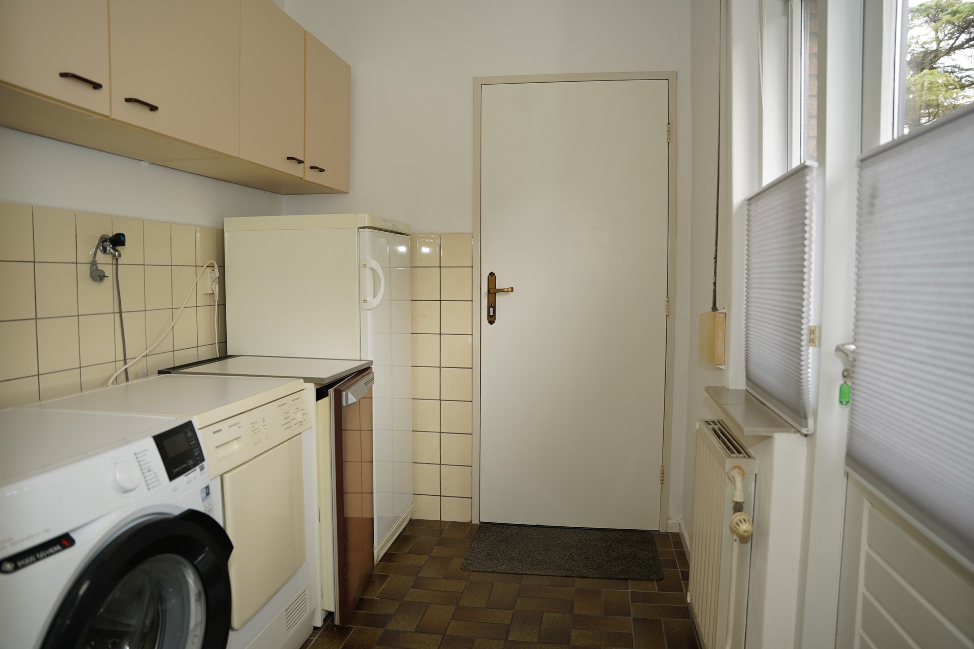 Vanuit de bijkeuken heb je toegang tot de lange, brede garage met elektrische sectionaldeur en een grondwaterpomp. Hier is volop ruimte voor een auto, fietsen, gereedschap enz.