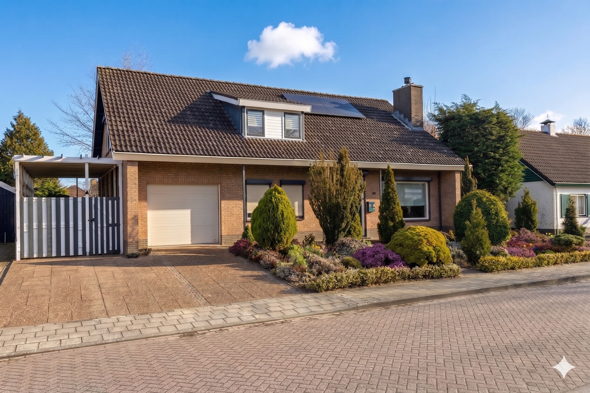 De tuin met zonneterras is fraai aangelegd, heerlijk beschut en biedt veel privacy; je hebt nauwelijks zicht op andere huizen. Er is een achterpoort, een mooi tuinhuis voorzien van elektra en een hout hok. Ook de voortuin is netjes verzorgd en zorgt voor een prettige eerste indruk. Daarnaast is er ook nog een carport én voldoende parkeergelegenheid op eigen terrein.