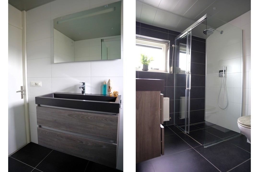 Via de met lichteffecten verfraaide trap bereik je de eerste verdieping. Hier vind je een royale hoofdslaapkamer met een grote vaste kastenwand en een tweede slaapkamer die eveneens prettig van formaat is. De grote slaapkamer aan de voorkant is heel praktisch op te delen in twee slaapkamers, zie hiervoor onze idee plattegrond. De badkamer is modern uitgevoerd met een stijlvolle douchecabine, wastafelmeubel en tweede toilet – helemaal van deze tijd.