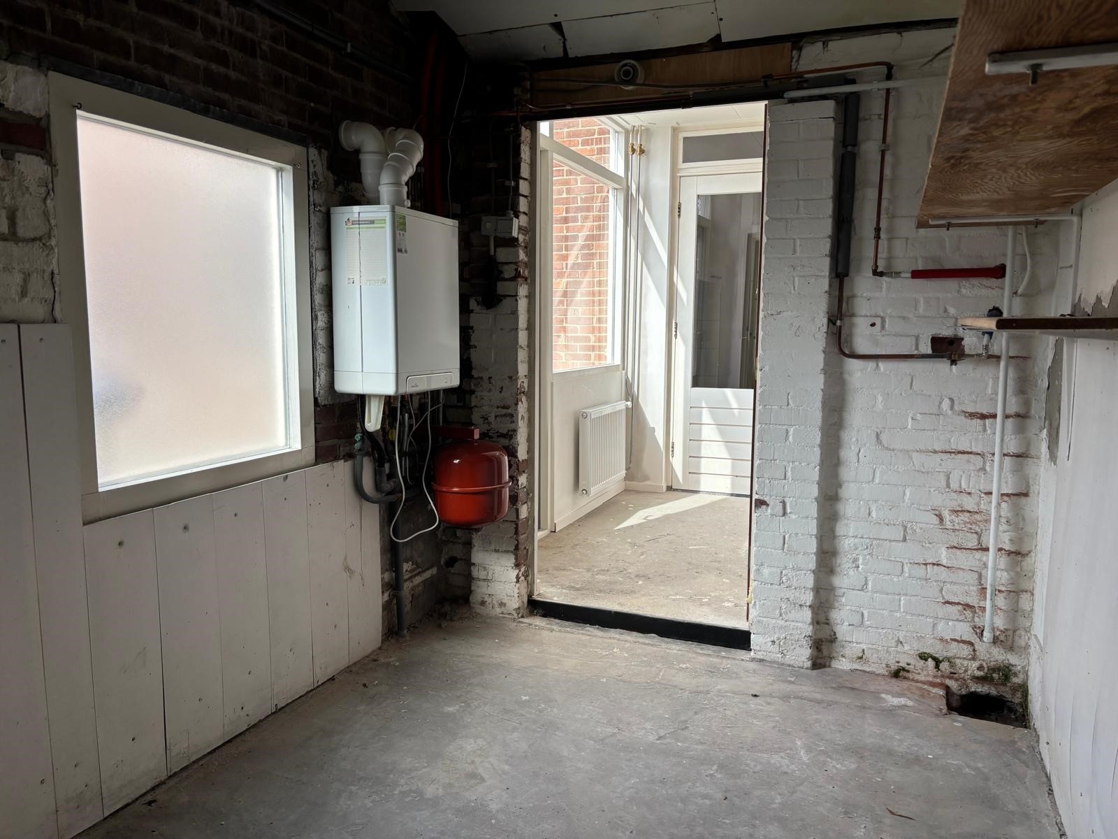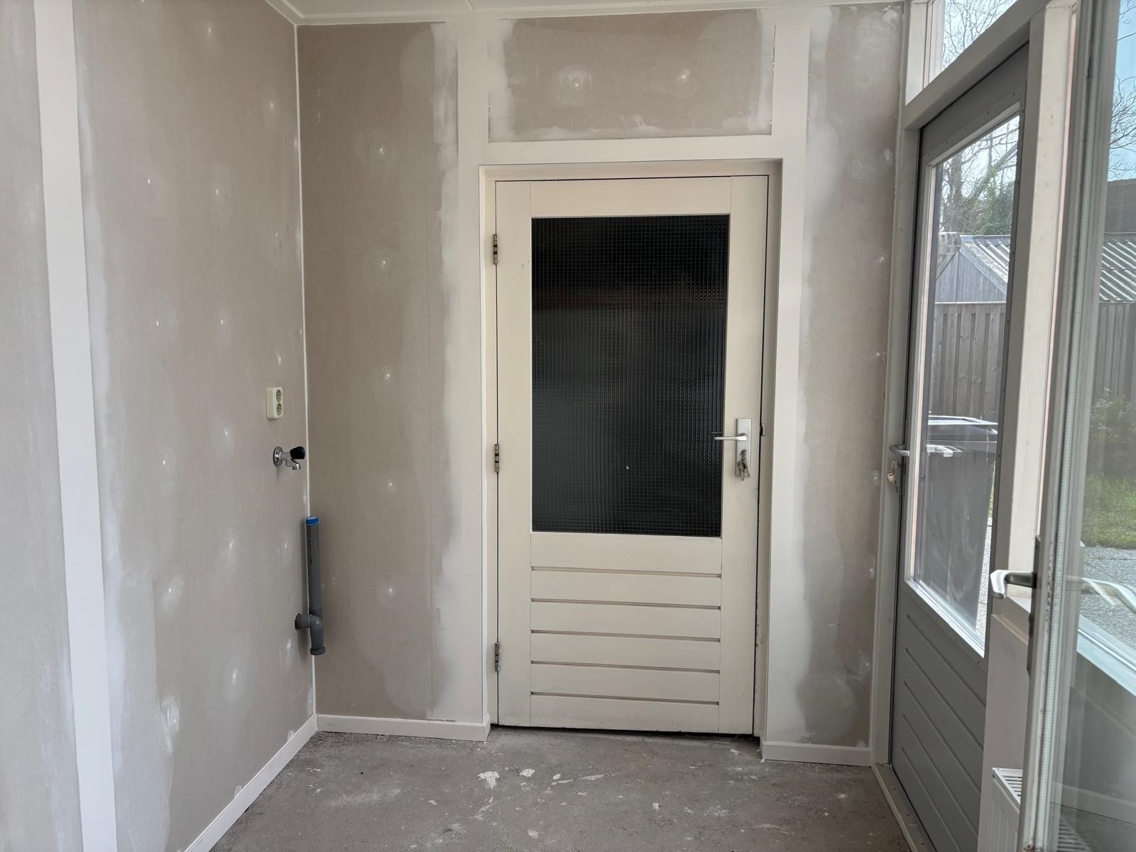 De keuken is functioneel ingericht en staat in verbinding met de bijkeuken, waar je de wasmachine aansluit. Vanuit hier heb je direct toegang tot de tuin.