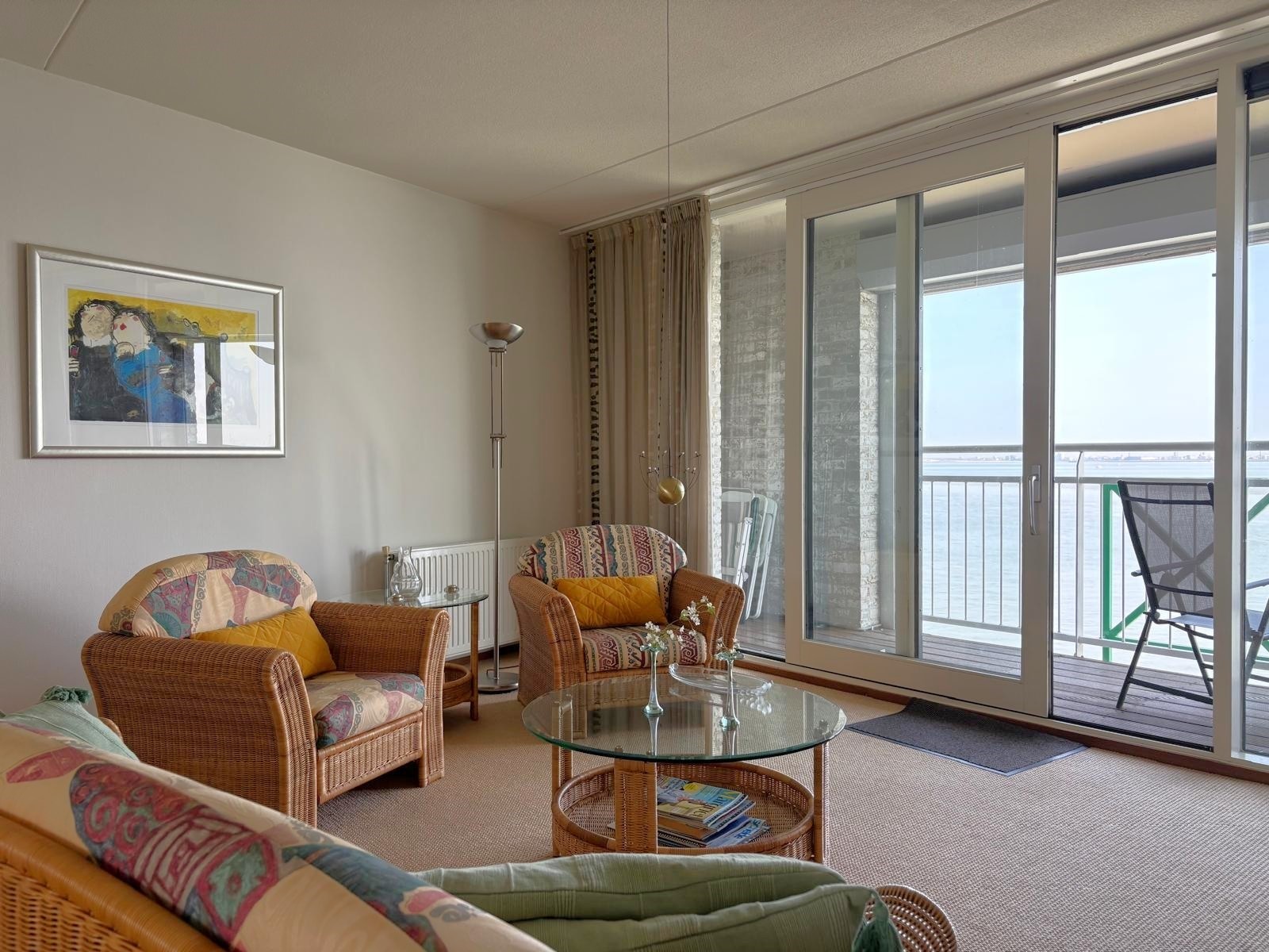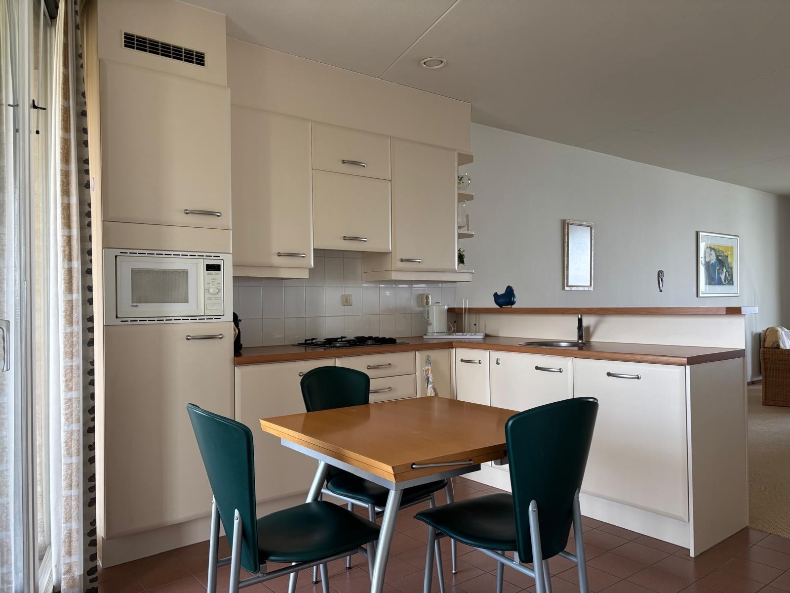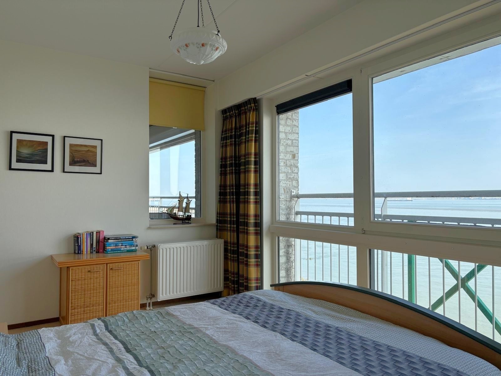 Binnenkomen voelt hier direct goed. Alles is netjes, licht en overzichtelijk. Hier is ook de meterkast en een dubbele deur en een garderobehoek. De woonkamer is echt een heerlijke plek, met grote ramen, veel licht en direct toegang tot het balkon met zeezicht. Dit is zo’n uitzicht dat nooit verveelt. De open keuken is praktisch en compleet, en staat in fijne verbinding met de woonkamer. De slaapkamers zijn beide prettig van formaat. De kamer aan de achterzijde is echt een verrassing: een groot raam tot op de vloer geeft je een fantastisch uitzicht over de haven en het achterland. De badkamer is compleet met ligbad, douche en wastafelmeubel. Daarnaast heb je een apart toilet en een handige berging voor wasmachine en de cv-ketel.