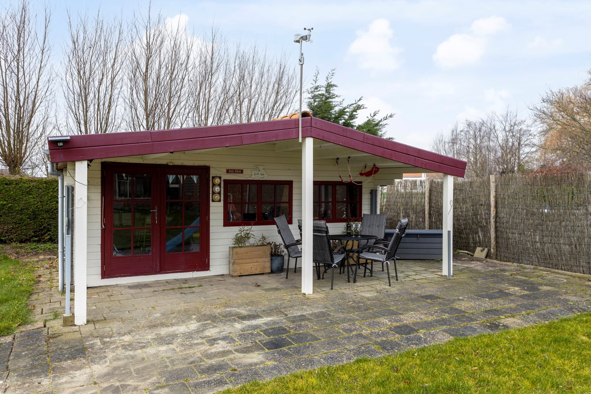 De achtertuin is een waar genot, met uitgestrekte groene gazons en een omheining die niet alleen zorgt voor een gevoel van ruimtelijkheid, maar een aanleg die tevens het onderhoud vereenvoudigd. In de tuin staat een ruim tuinhuis (ongeveer 6 x 4 meter) met een overdekt terras. Dit gebouwtje heeft elektrische voorzieningen en aansluiting op het riool, wat veel mogelijkheden biedt. Bovendien heeft de tuin een praktische eigen gang aan zowel de zuid- als de noordkant van het huis.