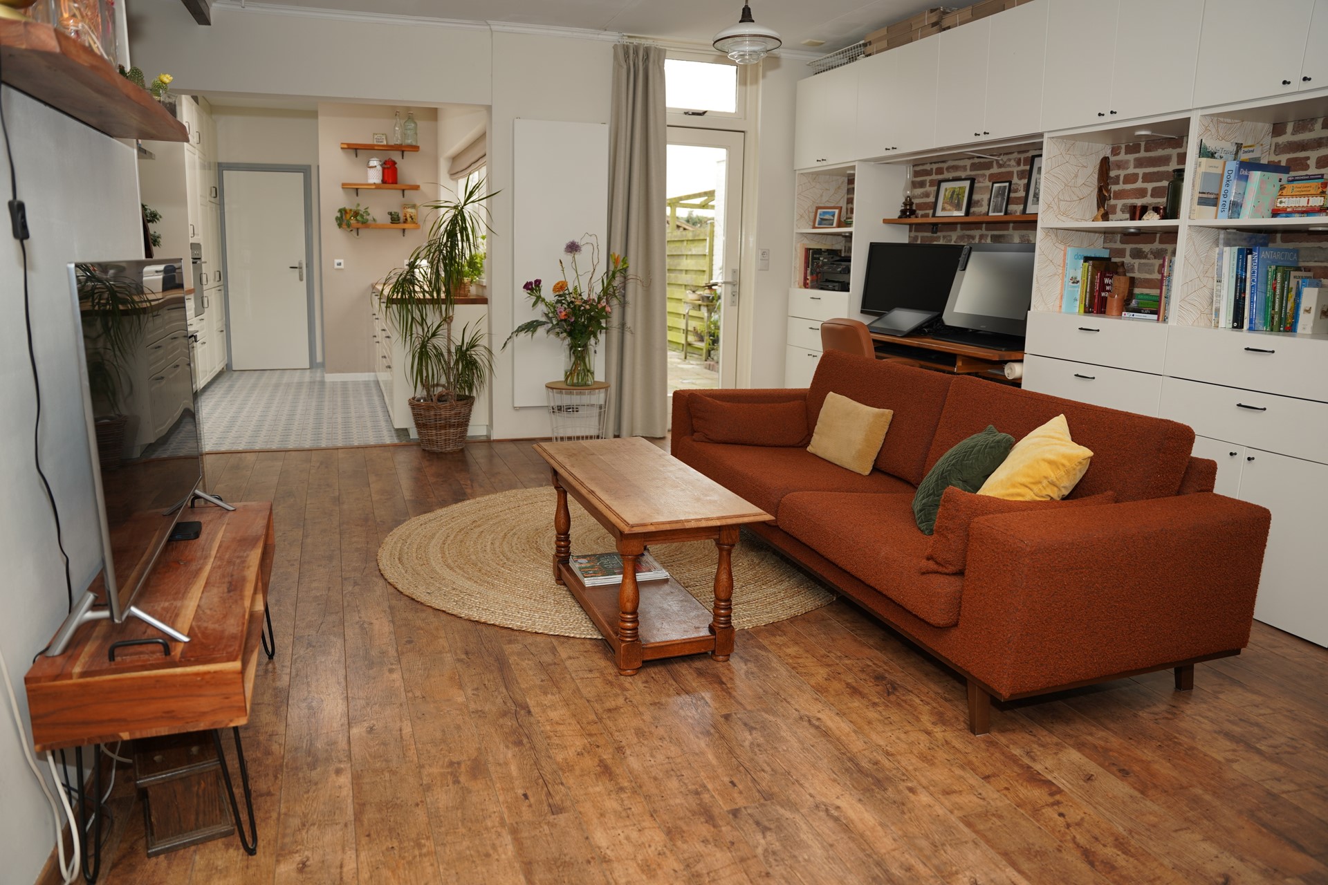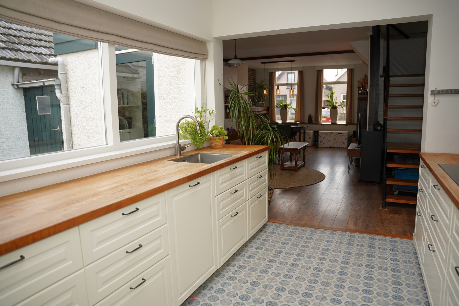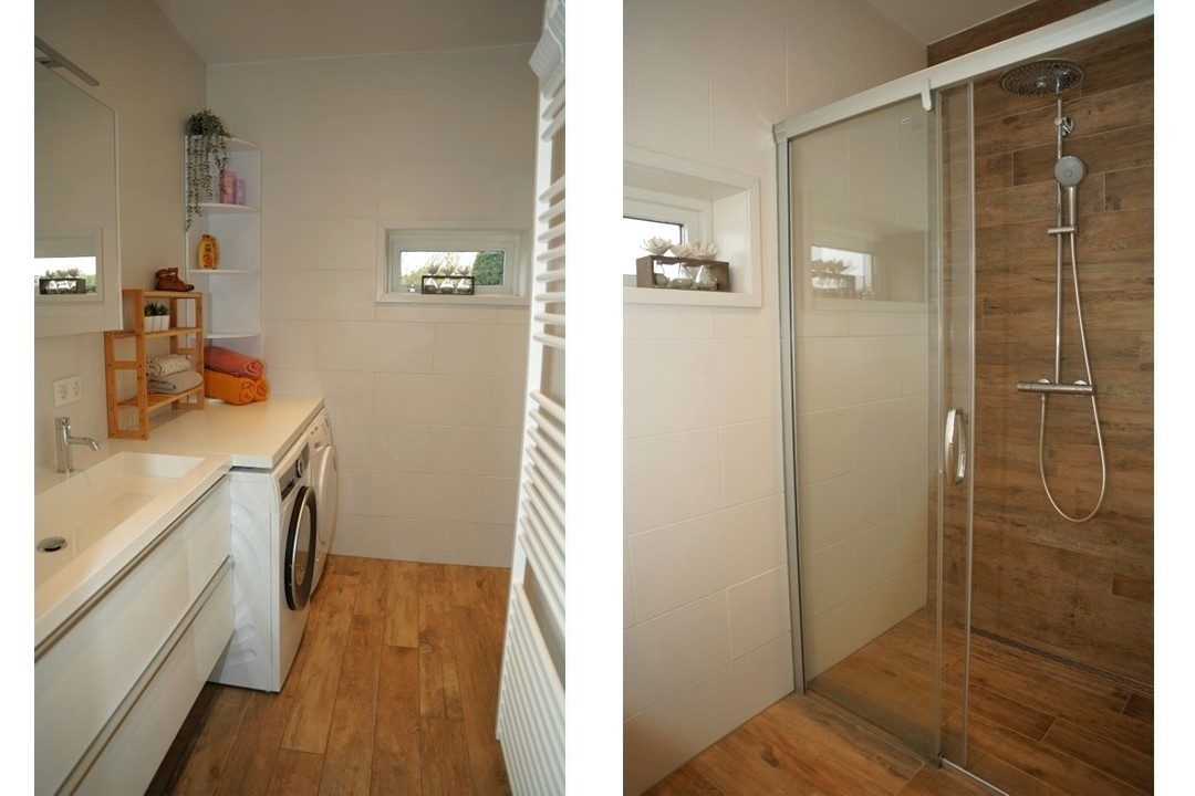 Eenmaal binnen in de hal word je direct naar de gezellige woonkamer geleid. De ruimte die je ervaart, zal je overweldigen. In de woonkamer zijn de authentieke details volledig in harmonie met hedendaagse gemakken. De sierschouw zorg voor nog meer gezelligheid. De open keuken met een ruim aanrecht aan 2 zijden is van alle gemakken voorzien met onder andere een moderne oven, een vaatwasser en een inductie kookplaat. Een groot raam richting de tuin zorgt hier voor een zee aan daglicht. Via de keuken kom je in de stijlvol ingerichte badkamer met inloopdouche, dubbele wastafel en aansluiting voor de wasmachine. Naast de badkamer is een apart toilet met een fonteintje. In de volledige aanbouw krijg je heerlijke warme voeten, door de comfortabele vloerverwarming in zowel de keuken als de sanitaire ruimtes.