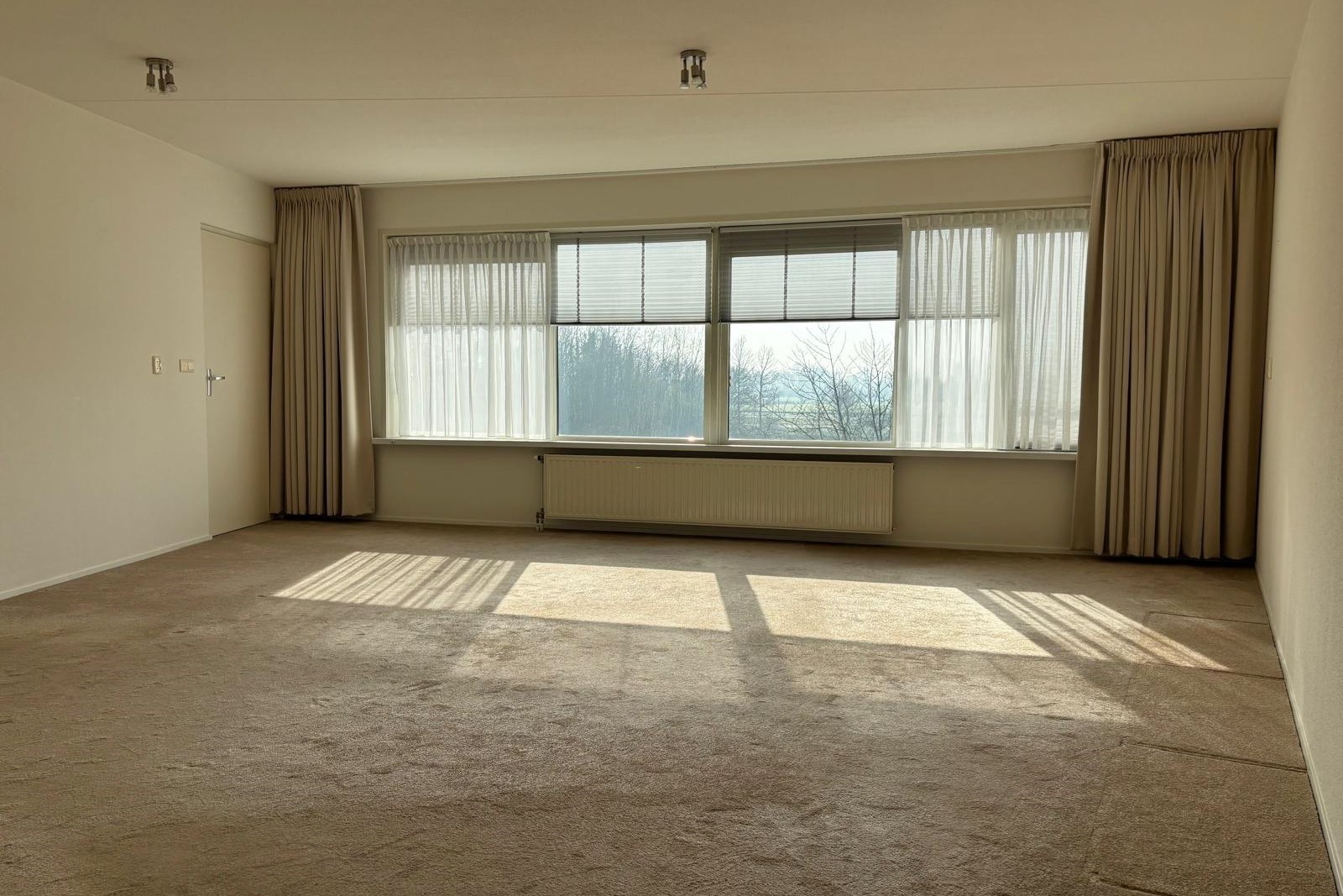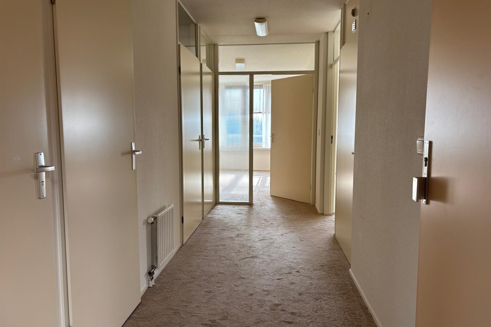 Het appartement zelf is ruim en overzichtelijk ingedeeld en volledig gelijkvloers. Bij binnenkomst kom je in de ruime hal met het toilet en de meterkast. De woonkamer is bijzonder royaal en wordt gekenmerkt door de grote raampartijen. Het daglicht valt hier prachtig naar binnen en het uitzicht over het groen geeft een gevoel van vrijheid en rust. Er is meer dan voldoende ruimte voor een comfortabele zithoek en een ruime eettafel. De keuken staat in open verbinding met de woonkamer en is voorzien van een nette keukenopstelling. Verder beschikt het appartement over twee slaapkamers. Slaapkamer 1 is toegankelijk vanuit de woonkamer en de hal. Deze kamer is voorzien van een loggia, waar je het gevoel van buiten zitten ervaart met uitzicht over het park. Slaapkamer 2 – de masterbedroom - is toegankelijk vanuit de hal, erg ruim van afmeting en heeft directe toegang tot de badkamer. De badkamer is voorzien van een inloopdouche, 2e toilet en een wastafel met hangkast. Tot slot heeft het appartement een inpandige berging waar zich de cv-installatie en de aansluitingen voor wasmachine / droger bevinden.