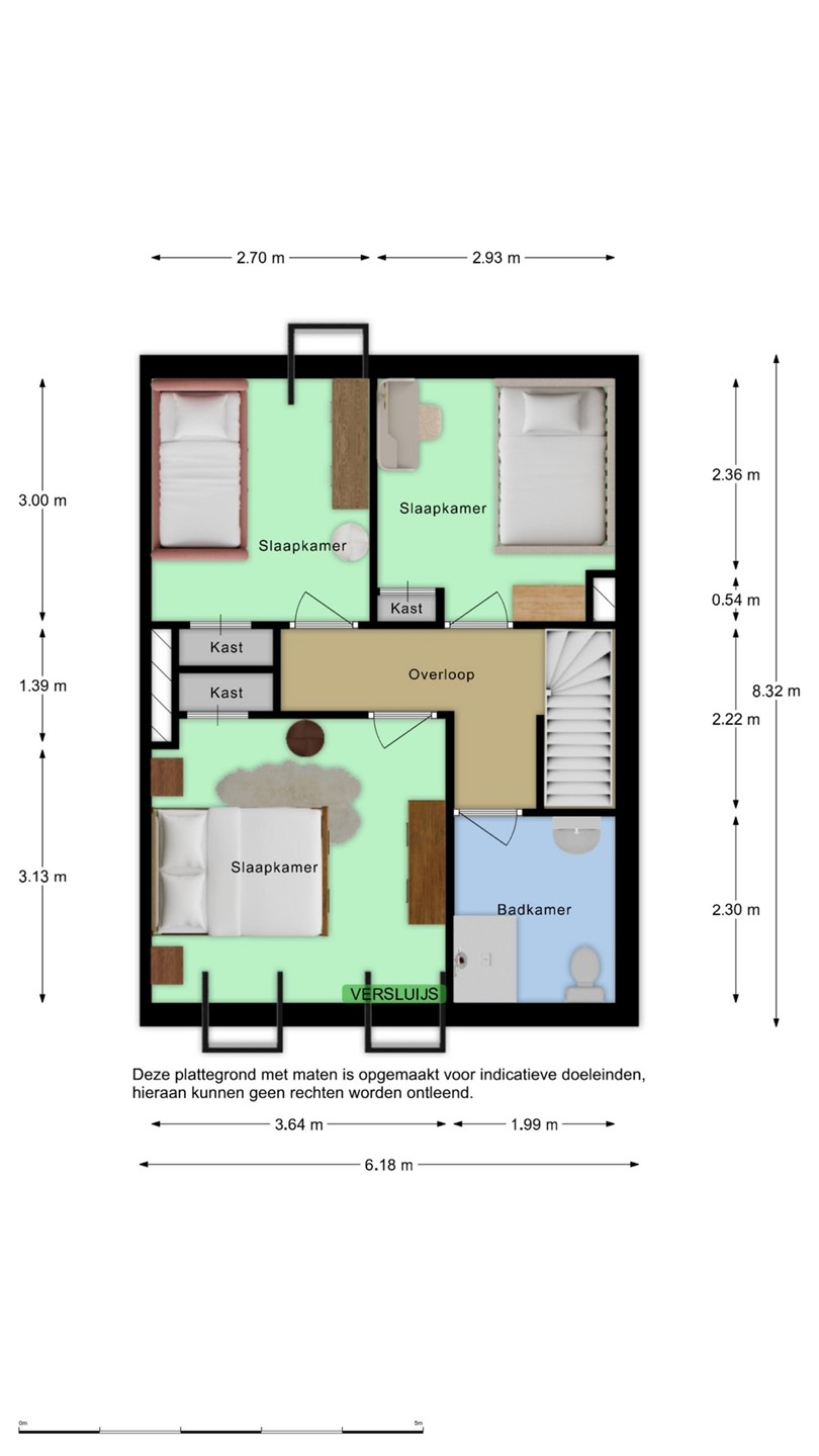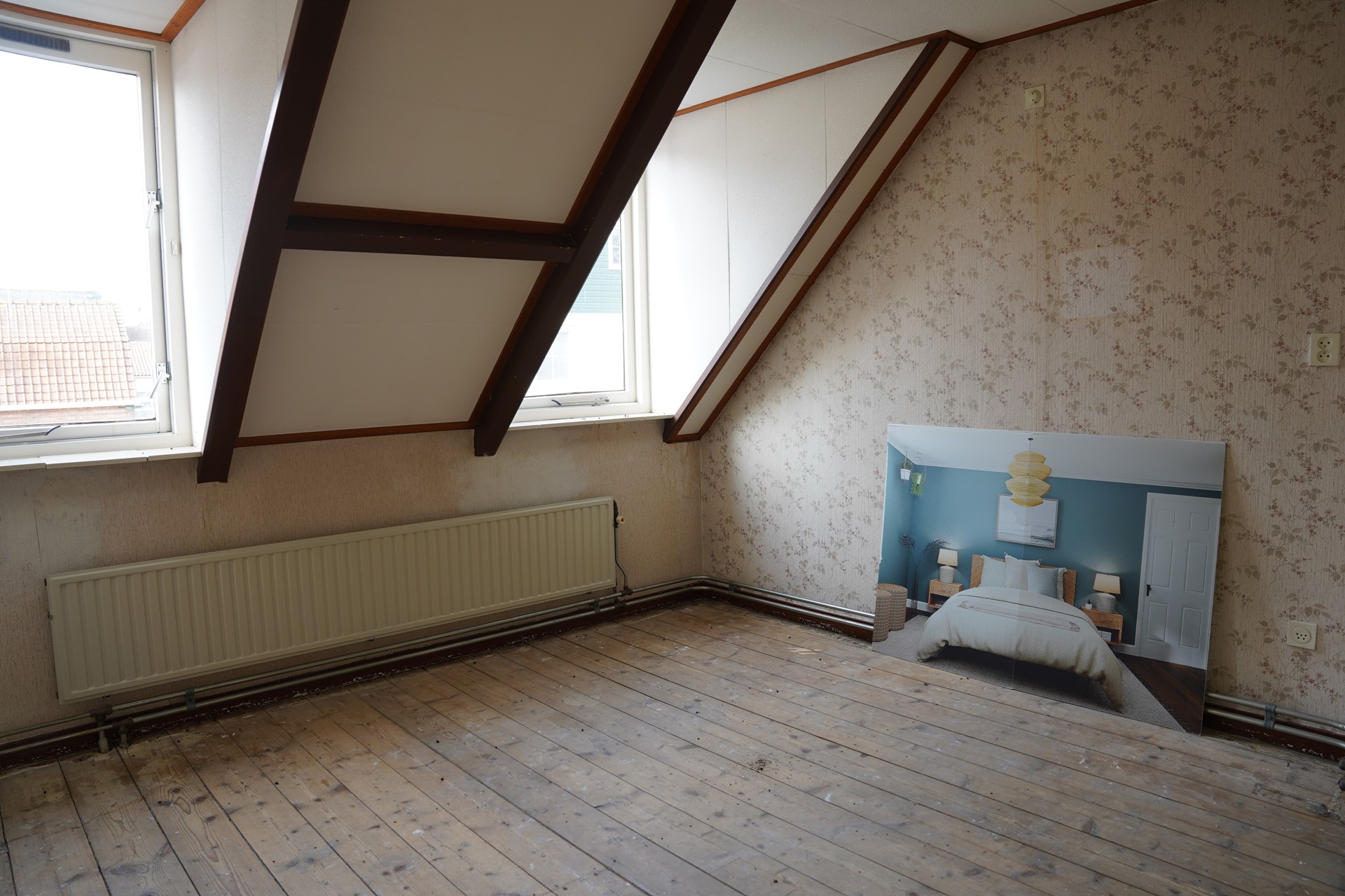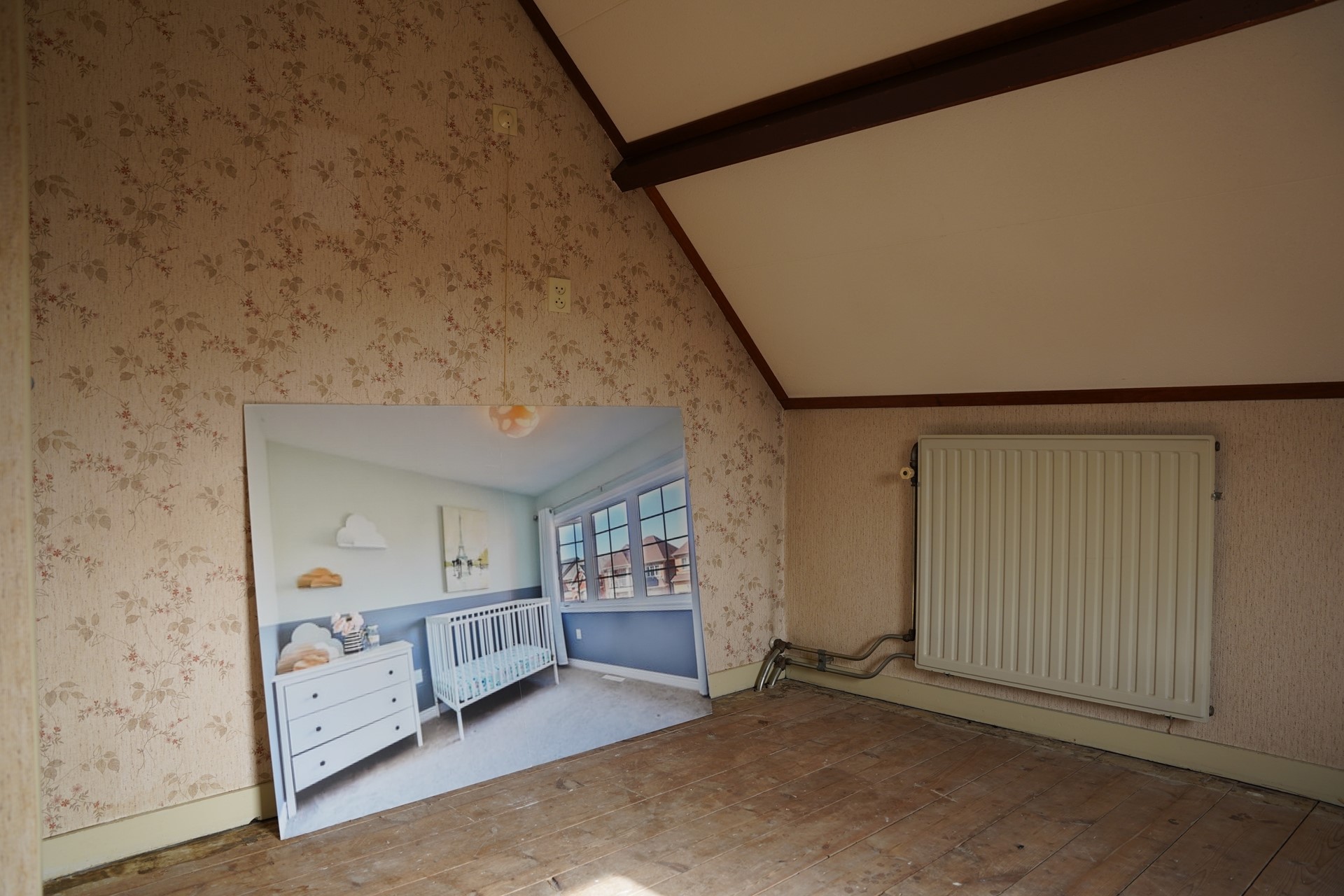 Op de verdieping kom je op de overloop met toegang tot drie slaapkamers. De kamers zijn praktisch ingedeeld en voorzien van vaste kasten. De slaapkamer aan de voorzijde profiteert van extra licht door de dakkapellen. Aan de achterzijde vind je nog een slaapkamer met dakkapel en een derde kamer die zich uitstekend leent als werk- of hobbyruimte. De badkamer is basic, maar compleet en functioneel.