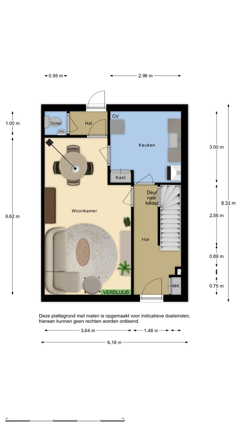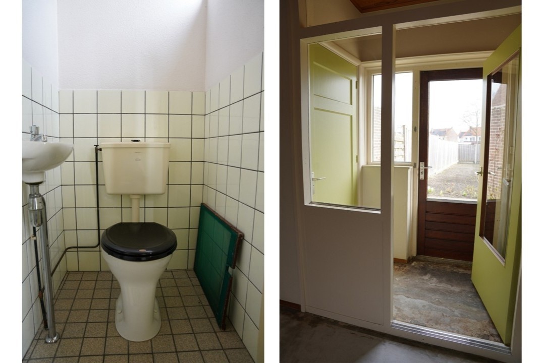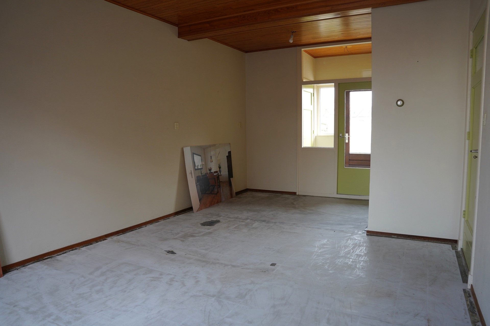 De hal met trap en meterkast vormt de entree. De kelderkast zorgt voor extra praktische ruimte. De woonkamer voelt warm en uitnodigend. De keuken is eenvoudig, maar licht en biedt volop mogelijkheden voor vernieuwing. Via de achterhal bereik je het toilet en de tuin.