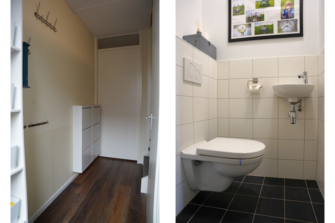 Je komt binnen in de hal met meterkast, toilet en trap naar boven. Vanuit hier stap je de woonkamer in, waar meteen opvalt hoe prettig de indeling is. De woonkamer is licht en comfortabel, met voldoende ruimte voor een gezellige zithoek. Via de tuindeur sta je in directe verbinding met buiten, wat zorgt voor een fijne, open sfeer. De eethoek en keuken lopen mooi in elkaar over en vormen samen een echte woonkeuken. De keuken is modern uitgevoerd en van alle gemakken voorzien. Hier kook je terwijl je in contact blijft met het gezin of je gasten.