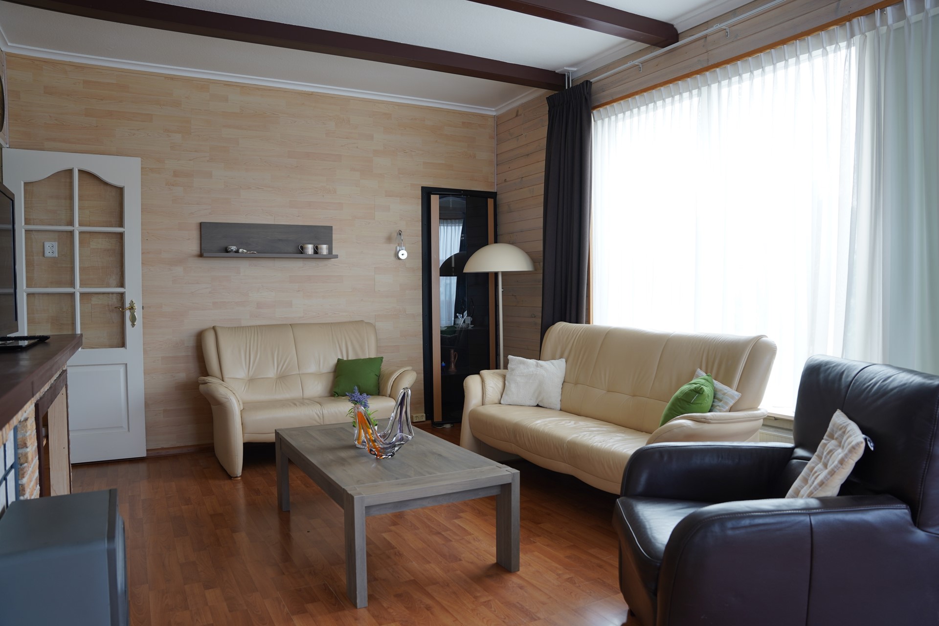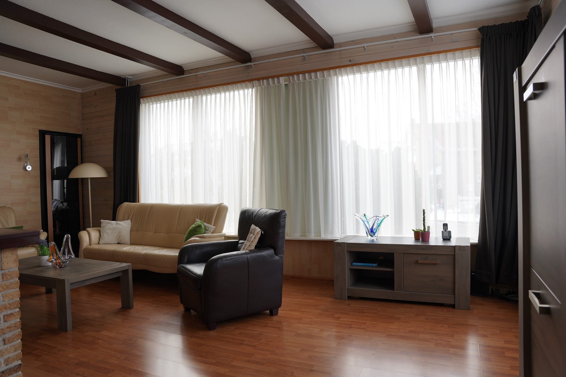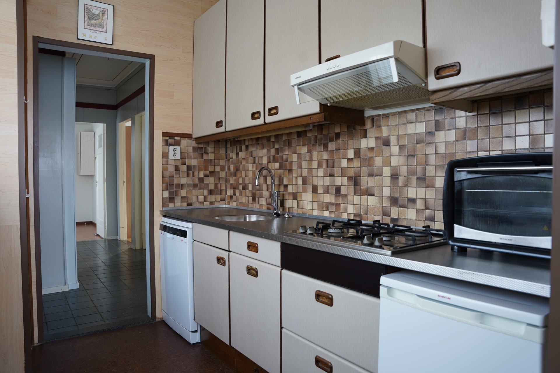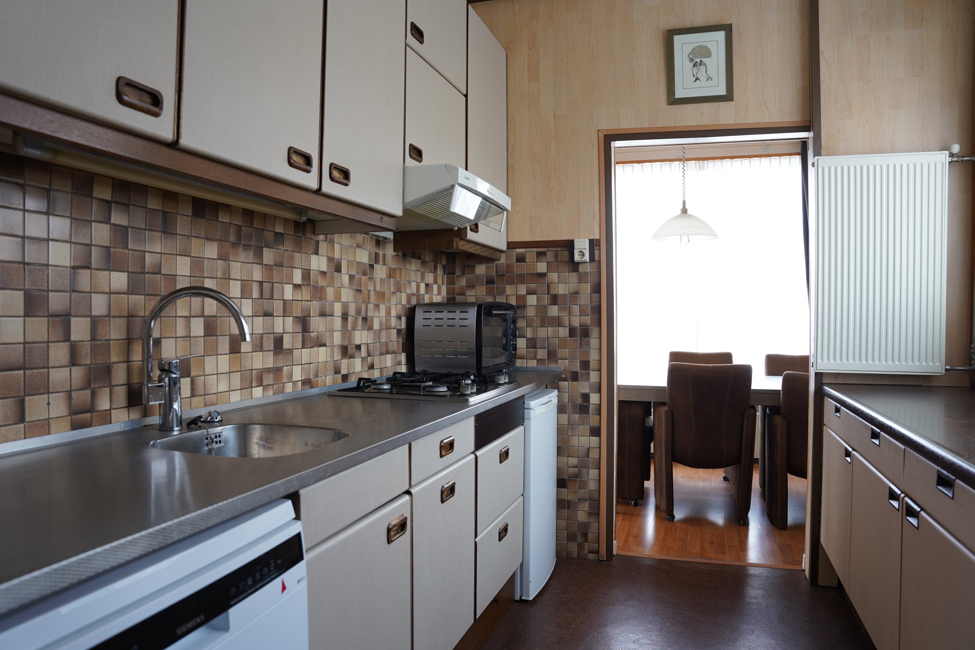 Je komt binnen in de hal met meterkast. Vanuit hier loop je door naar de L-vormige woonkamer met laminaatvloer en een sfeervolle sierschouw. Het daglicht valt hier prettig naar binnen en de ruimte voelt open en overzichtelijk aan. De keuken is praktisch ingericht en voorzien van losse apparatuur. Er zijn twee slaapkamers, beiden voorzien van vaste kasten. De masterbedroom is royaal van afmeting. De badkamer is in 2012 vernieuwd en uitgerust met een inloopdouche, toilet en wastafelmeubel. De tussenkamer kan dienstdoen als werkruimte, hobby- / slaapkamer of extra bergruimte. Aansluitend bevindt zich de bijkeuken met aansluitingen voor wasmachine en droger en een deur naar buiten.