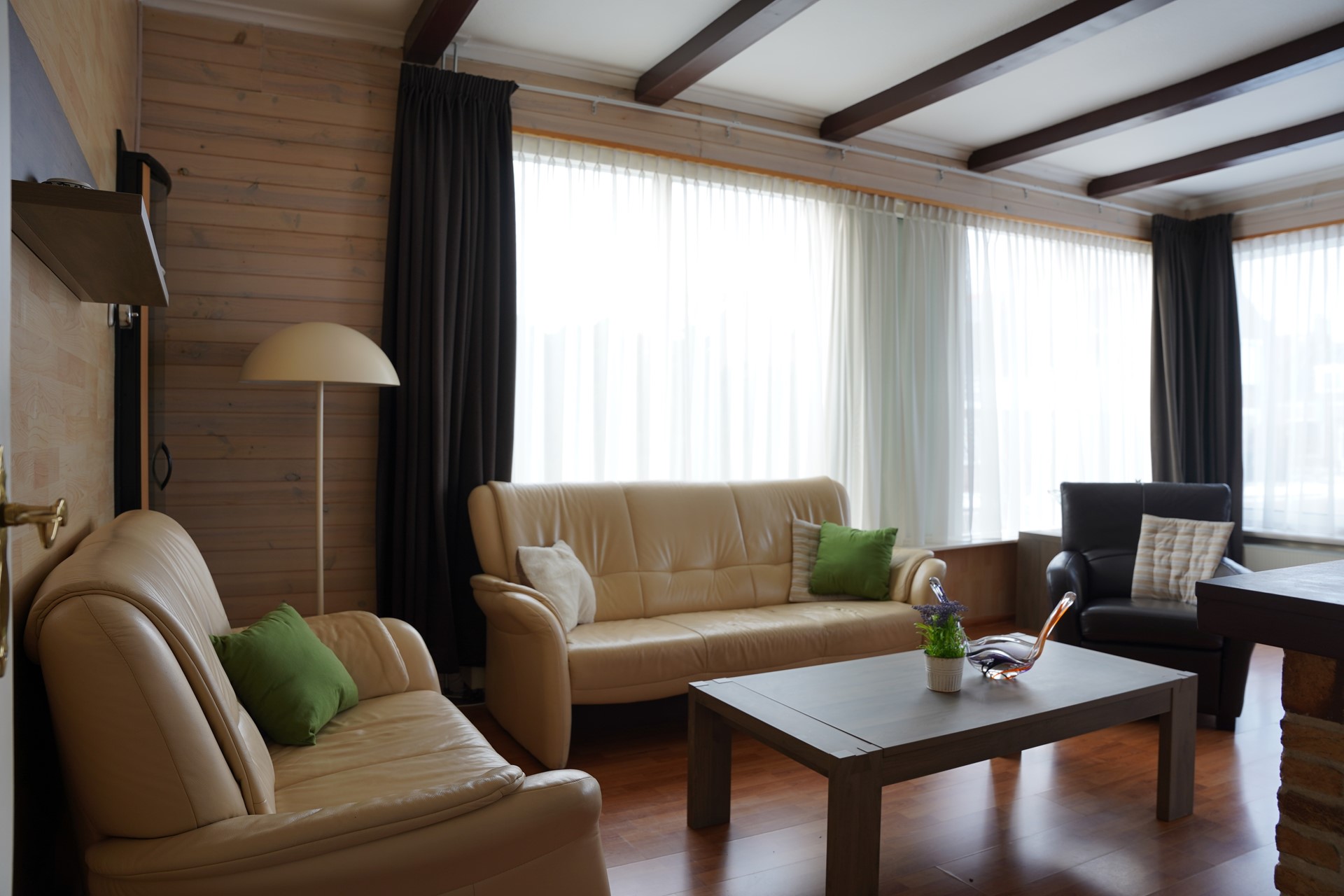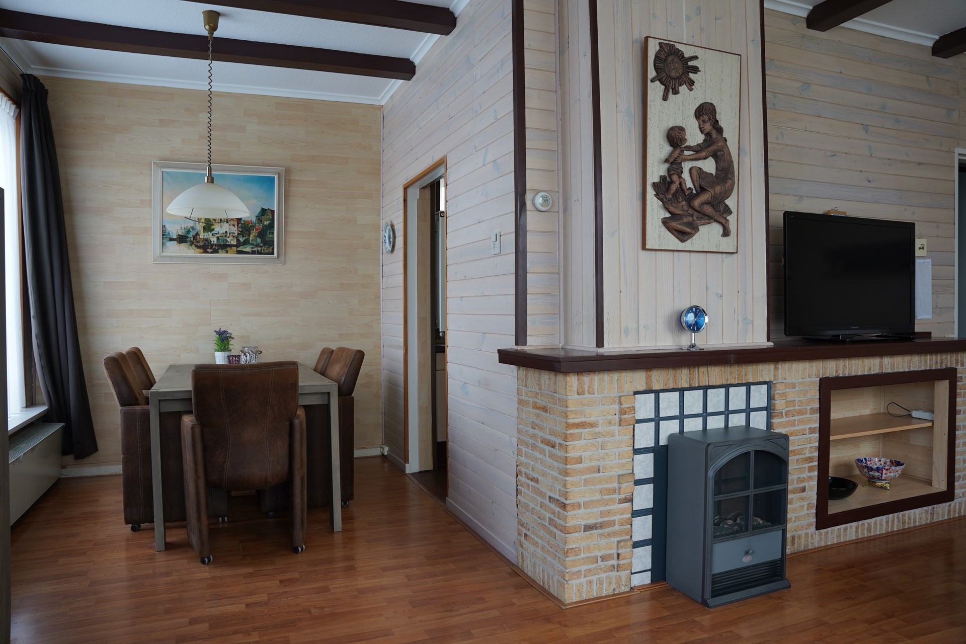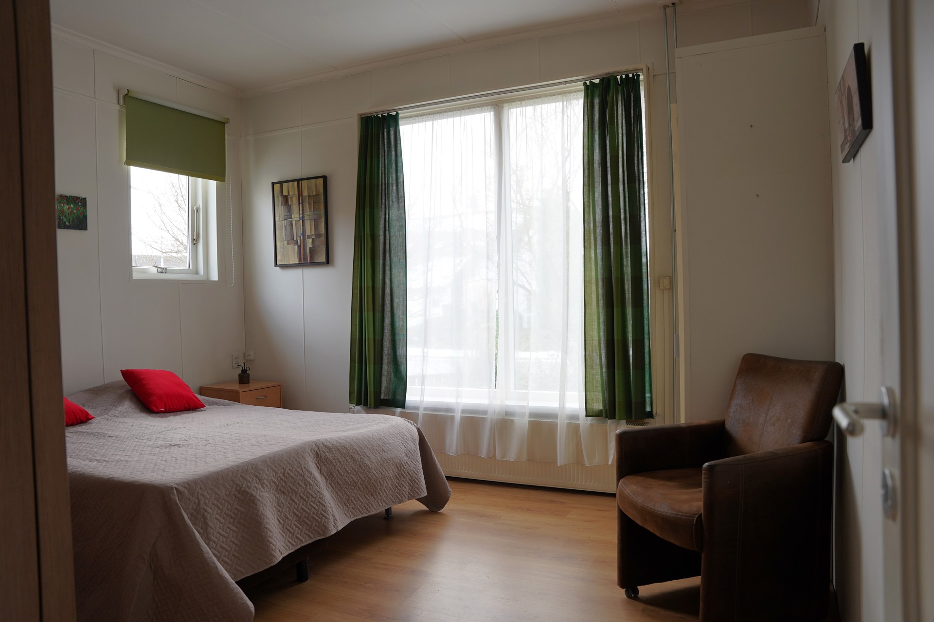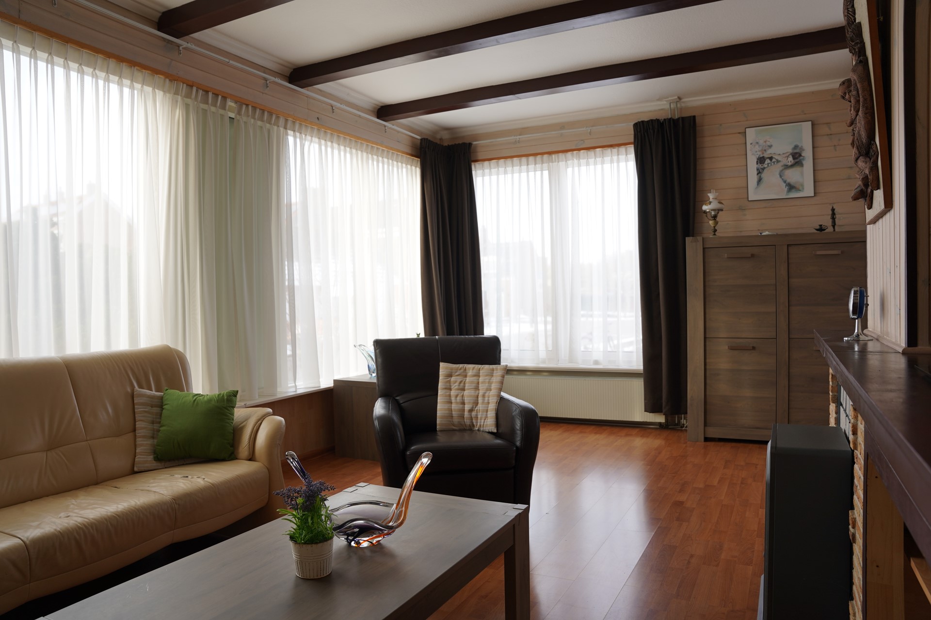 Je komt binnen in de hal met meterkast. Vanuit hier loop je door naar de L-vormige woonkamer met laminaatvloer en een sfeervolle sierschouw. Het daglicht valt hier prettig naar binnen en de ruimte voelt open en overzichtelijk aan. De keuken is praktisch ingericht en voorzien van losse apparatuur. Er zijn twee slaapkamers, beiden voorzien van vaste kasten. De masterbedroom is royaal van afmeting. De badkamer is in 2012 vernieuwd en uitgerust met een inloopdouche, toilet en wastafelmeubel. De tussenkamer kan dienstdoen als werkruimte, hobby- / slaapkamer of extra bergruimte. Aansluitend bevindt zich de bijkeuken met aansluitingen voor wasmachine en droger en een deur naar buiten.