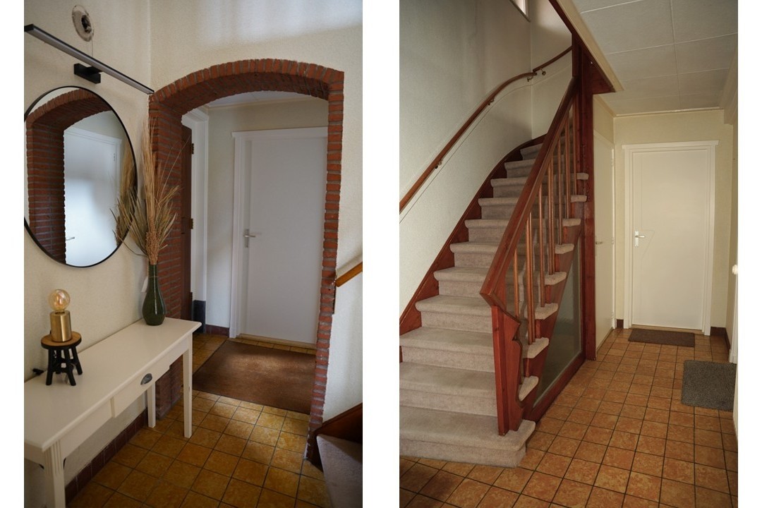 Dit leuke huis verrast direct bij binnenkomst in de ruimtelijke hal. Hier vind je het toilet, de toegang naar de kelderkast, de meterkast en een mooie trap naar de 1e verdieping. De ruime woonkamer is belegd met een pvc vloer en door de grote raampartijen valt er aangenaam veel daglicht naar binnen. Een vaste kast zorgt voor handige bergruime, terwijl de voormalige schouw zorgt voor extra sfeer in deze ruimte. Via een deur kom je in de voortuin met een gezellig terras op het zuiden. Terug naar de hal heb je vanaf hier toegang naar het kantoor annex werkkamer, hoewel deze ruimte ook vanuit de woonkamer bereikbaar is. Aan de andere kant van de hal geeft een deur toegang tot de bijkeuken waar de aansluitingen voor de wasmachine en de droger zijn en waar ook de cv ketel staat opgesteld. Ook hier heb je via een buitendeur toegang tot weer een ander deel van de tuin. De ruime woonkeuken is uitgerust met alle benodigde apparatuur. Ook hier weer aangenaam veel licht en ruimte.