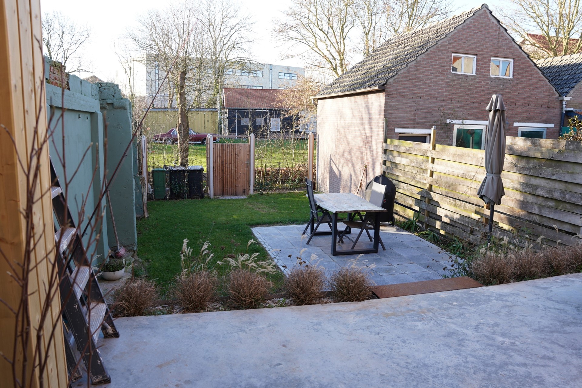 De achtertuin is verrassend en gelegen op het zuidwesten. Hier geniet je volop van de zon. Er zijn twee terrassen aangelegd, een praktische achterom en een nette hoek voor containers. Een fijne plek om buiten te leven, zonder veel onderhoud. De achtertuin heeft een uitgang naar een pad, zodat de tuin buitenom bereikbaar is. Ideaal voor je containers en fietsen.