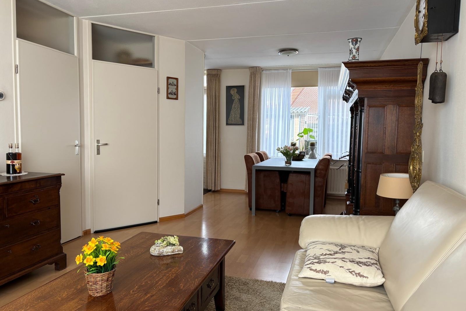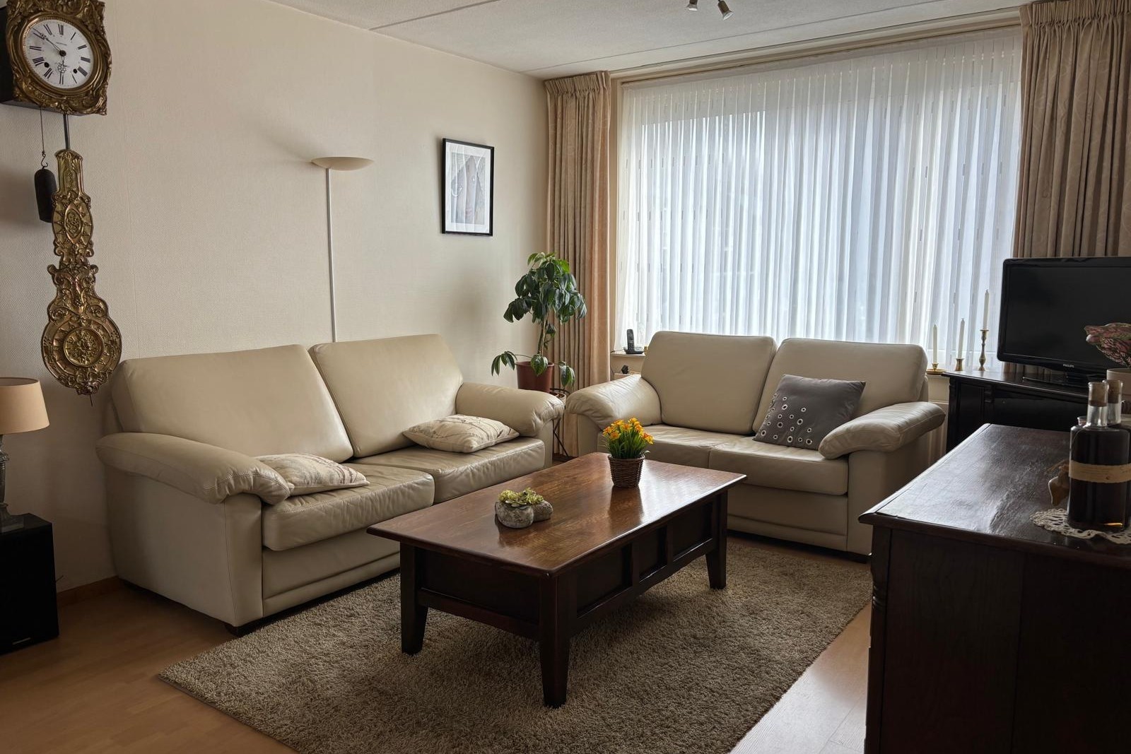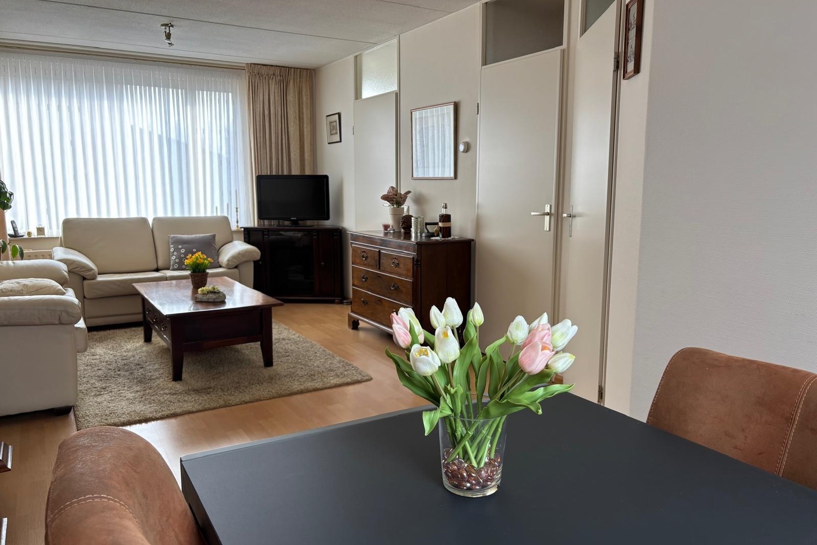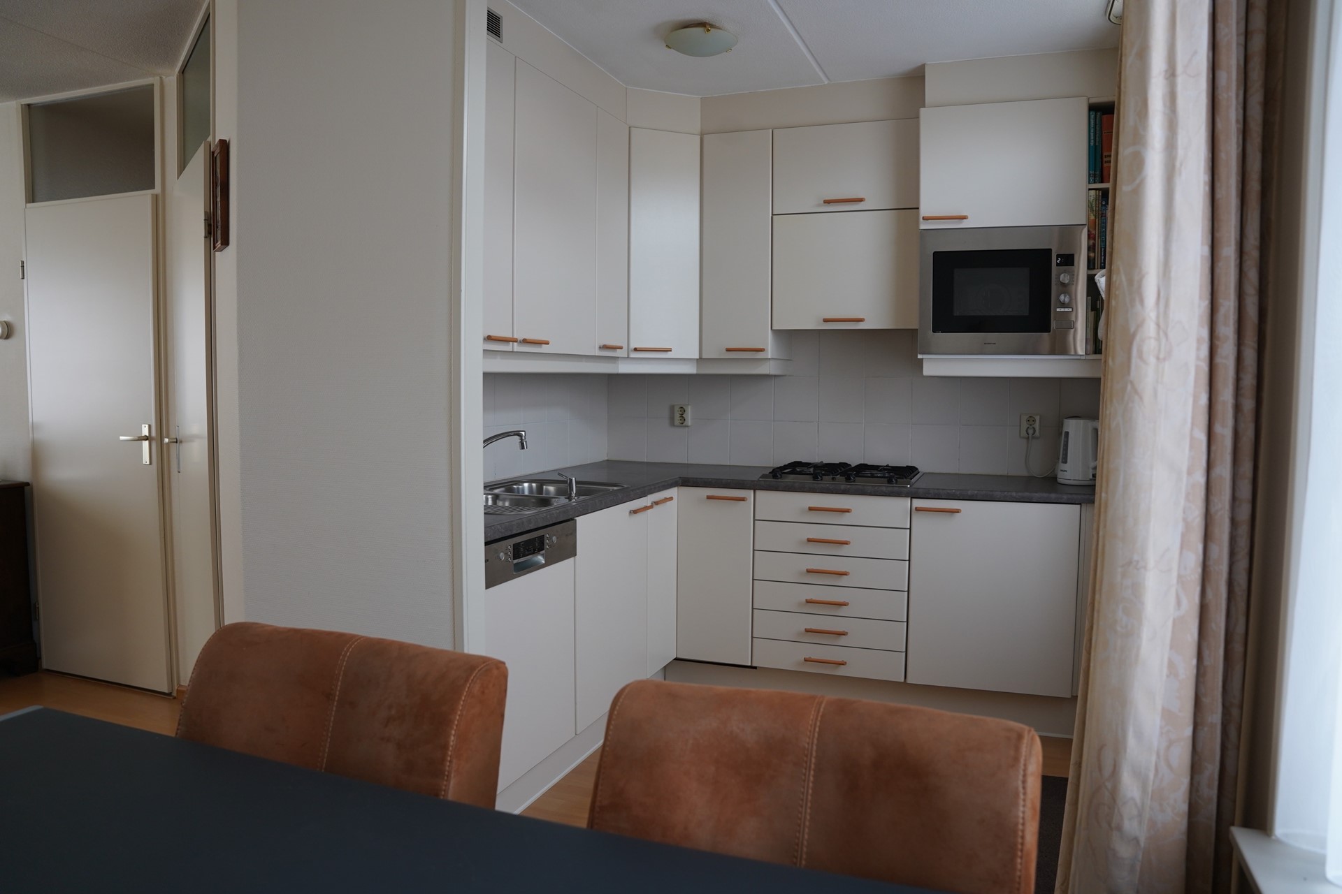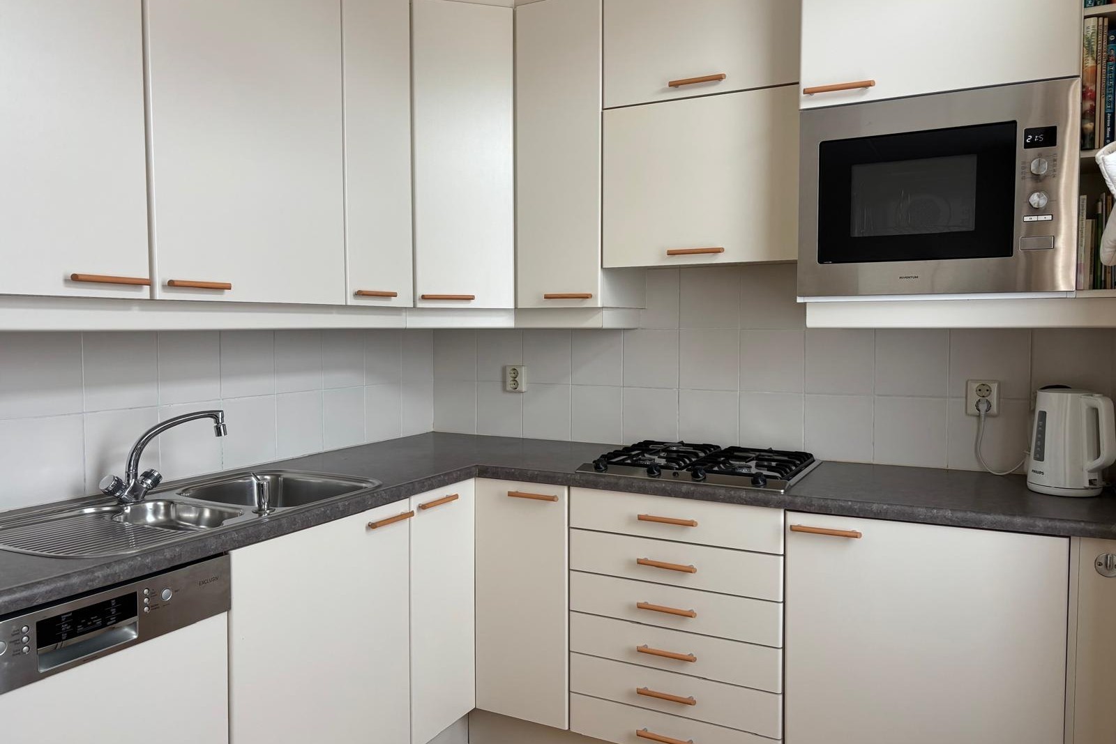 Via de hal met meterkast en toilet kom je in de woonkamer. Hier valt direct het lichte en verzorgde karakter op. De laminaatvloer zorgt voor een rustige basis en dankzij de grote raampartij aan de voorzijde geniet je van prettig daglicht. De trapkast biedt praktische bergruimte. Aan de achterzijde bevindt zich de keuken, uitgevoerd in een lichte kleurstelling en voorzien van inbouwapparatuur. Een fijne plek om te koken, met direct contact naar de tuin.
