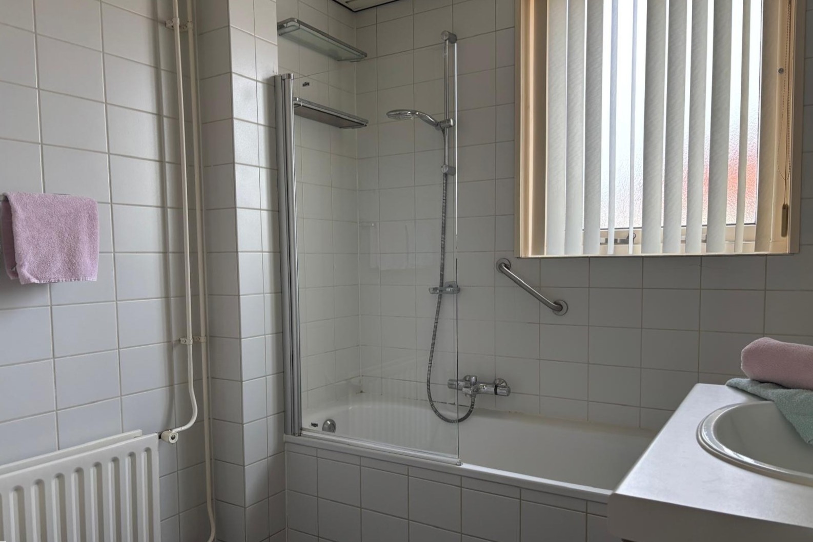 Op de eerste verdieping vind je twee slaapkamers (oorspronkelijk waren er 3 kamers, dit is eenvoudig weer terug te brengen) en de badkamer. De badkamer is compleet ingericht met een bad-douchecombinatie, wastafelmeubel en tweede toilet. Het raam zorgt voor natuurlijke ventilatie en daglicht.