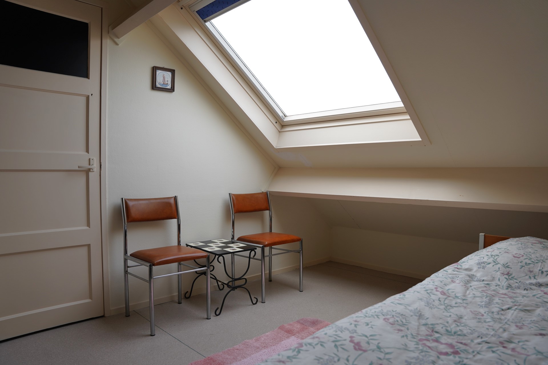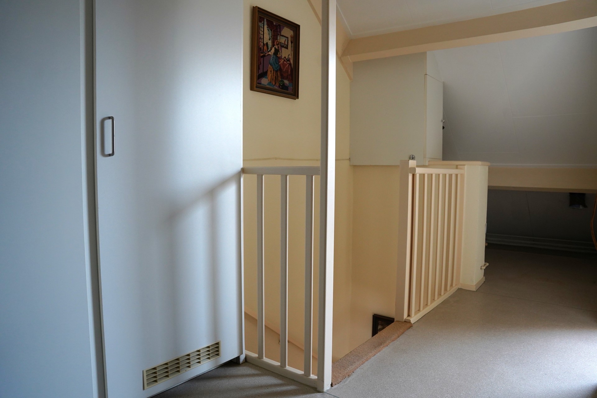 Via de vaste trap bereik je de tweede verdieping. Hier bevindt zich een ruime derde slaapkamer met Velux dakraam. Daarnaast is er een praktische overloop met de opstelling van de cv-ketel en aansluitingen voor wasmachine en droger. Ook is er een verrassende bureauhoek, die door de slimme indeling van de verdieping is gecreëerd. Met een nog te plaatsen – vergunningsvrij - Veluxvenster kan deze ruimte een perfecte thuiswerkplek worden.