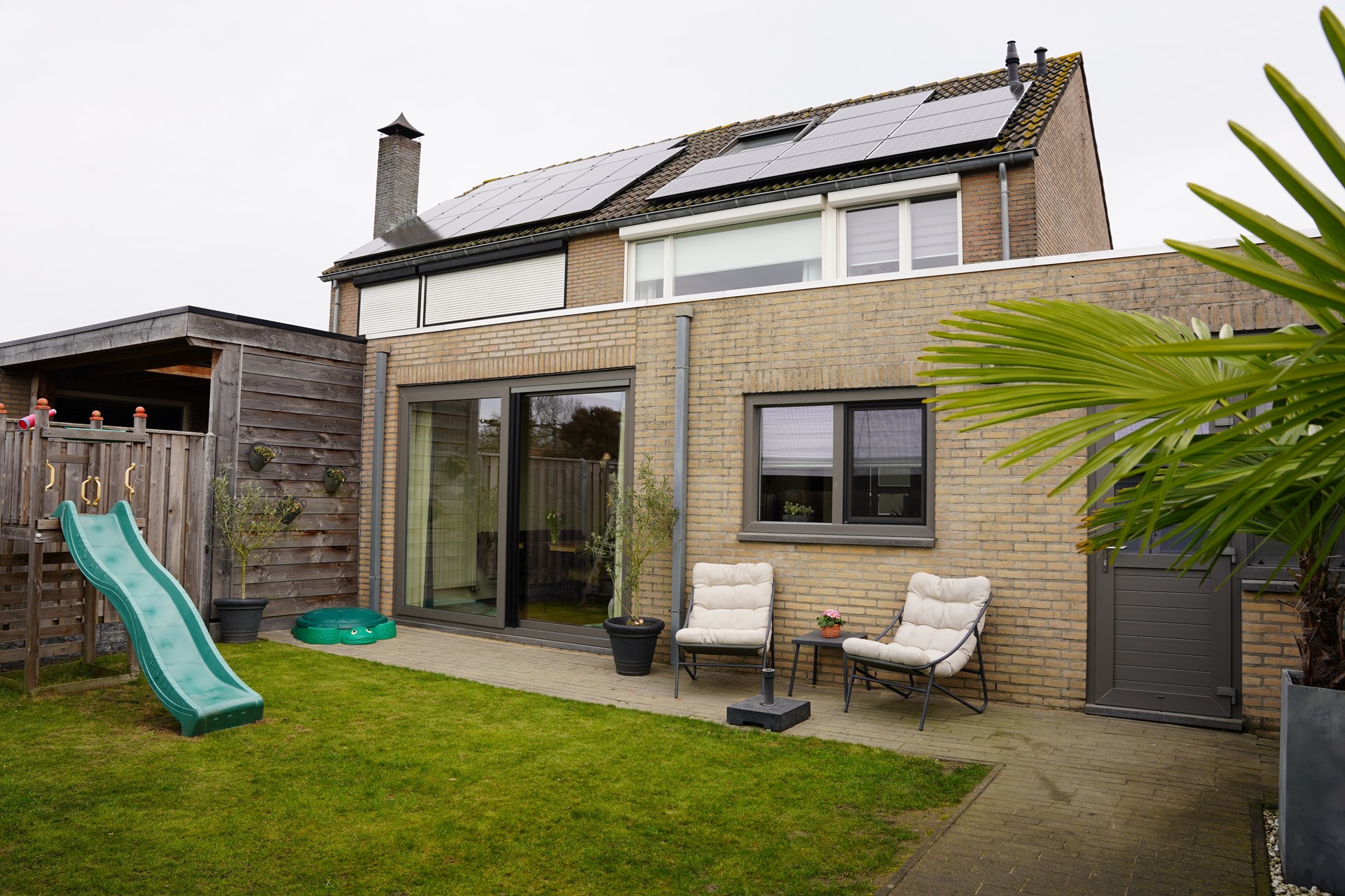 De achtertuin ligt gunstig op het zuidwesten en is netjes en verzorgd aangelegd. Dankzij de gunstige ligging geniet je hier volop van de middag- en avondzon. Het overdekte terras maakt het mogelijk om ook op minder warme dagen heerlijk buiten te zitten. Achterin de tuin staat een praktisch tuinhuis dat extra bergruimte biedt. Doordat er geen directe achterburen zijn, ervaar je hier een prettig gevoel van rust en privacy.