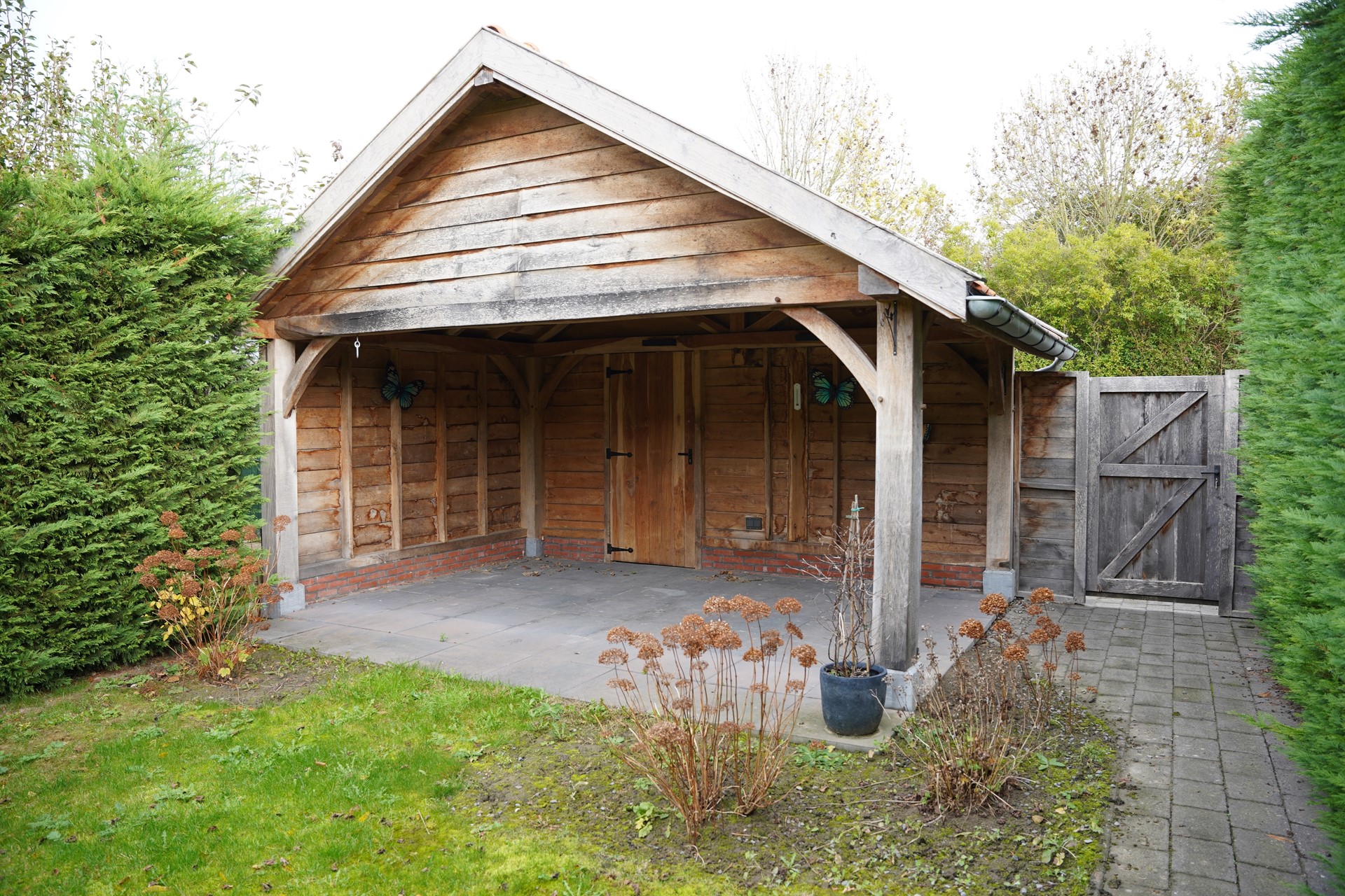 De achtertuin en de bijbehorende gebouwen hebben in 2021 een metamorfose ondergaan. De diepe achtertuin is hierdoor één van de grote verrassingen van dit huis. Hier geniet je van rust, privacy en groen. Dankzij het zeer sfeervol en luxe massief houten overdekte terras zit je zelfs bij minder mooi weer heerlijk buiten. Hier ga je vele uren van genieten. En met de appelboompjes in je eigen tuin pluk je letterlijk de vruchten van het buitenleven. Achter in de tuin staat een vrijstaande berging annex garage, ideaal voor de klusser of de auto. De garage is voorzien van stroom en licht. Achter de garage liggen nog 2 privé parkeerplaatsen, dus parkeren is nooit een probleem.