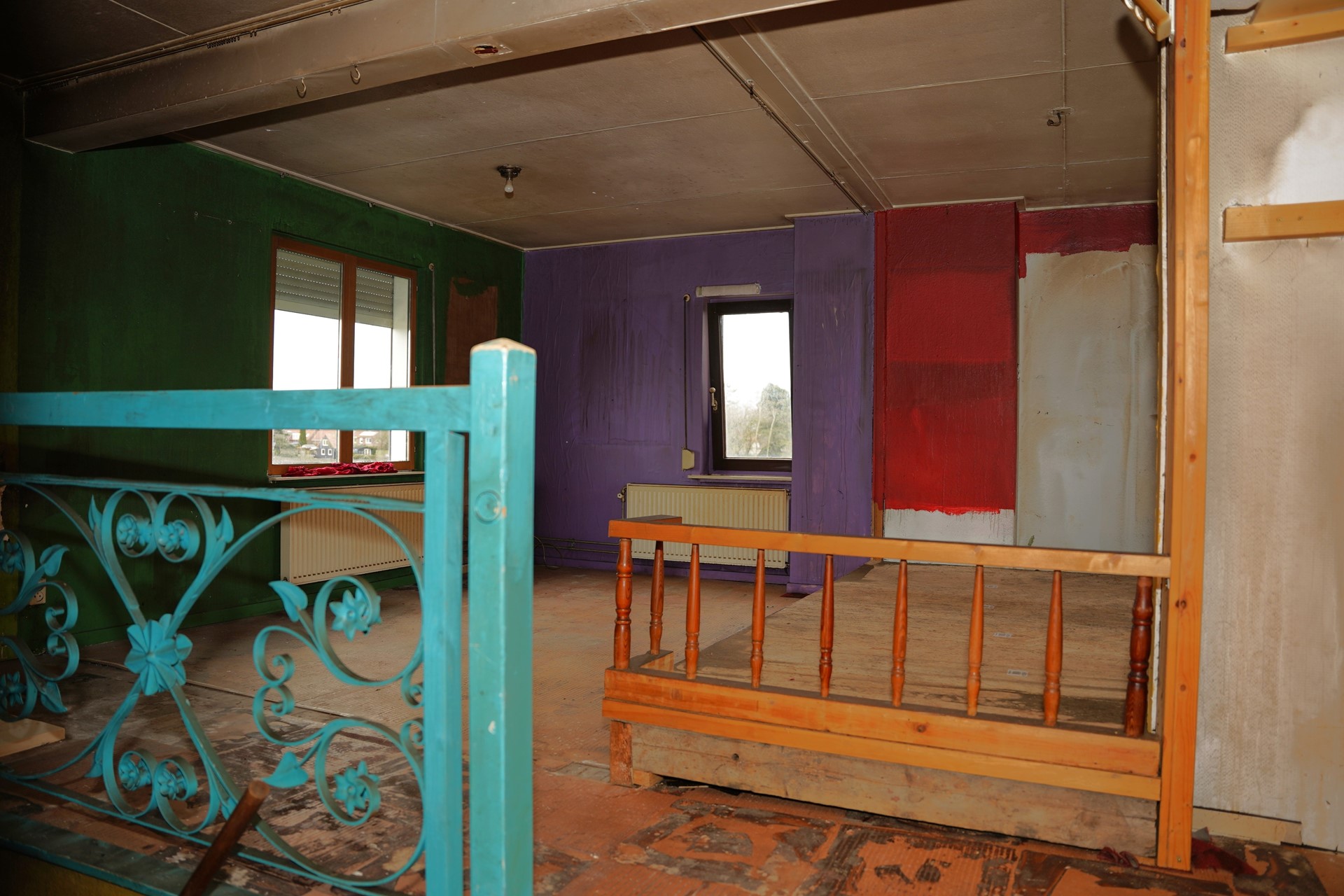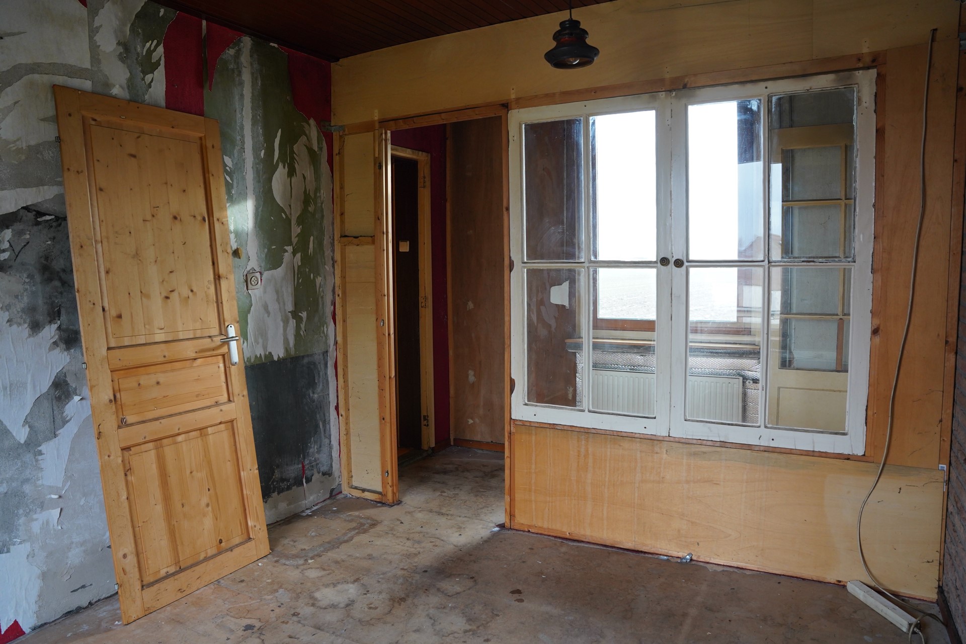 De trap brengt je naar de verdieping, waar meerdere kamers zijn gesitueerd. Hier bevindt zich een ruime “overloop” die zich uitstekend leent als hoofdslaapkamer. Dankzij de afmetingen is hier ruimte voor een groot bed en kasten, en met een nieuwe afwerking kan dit een rustige en comfortabele slaapruimte worden. Daarnaast zijn er nog twee kleinere slaapkamers aanwezig. Met de juiste keuzes is hier een volwaardige slaapverdieping met 3 slaapkamers en een badkamer te realiseren die perfect aansluit bij de rest van het huis.