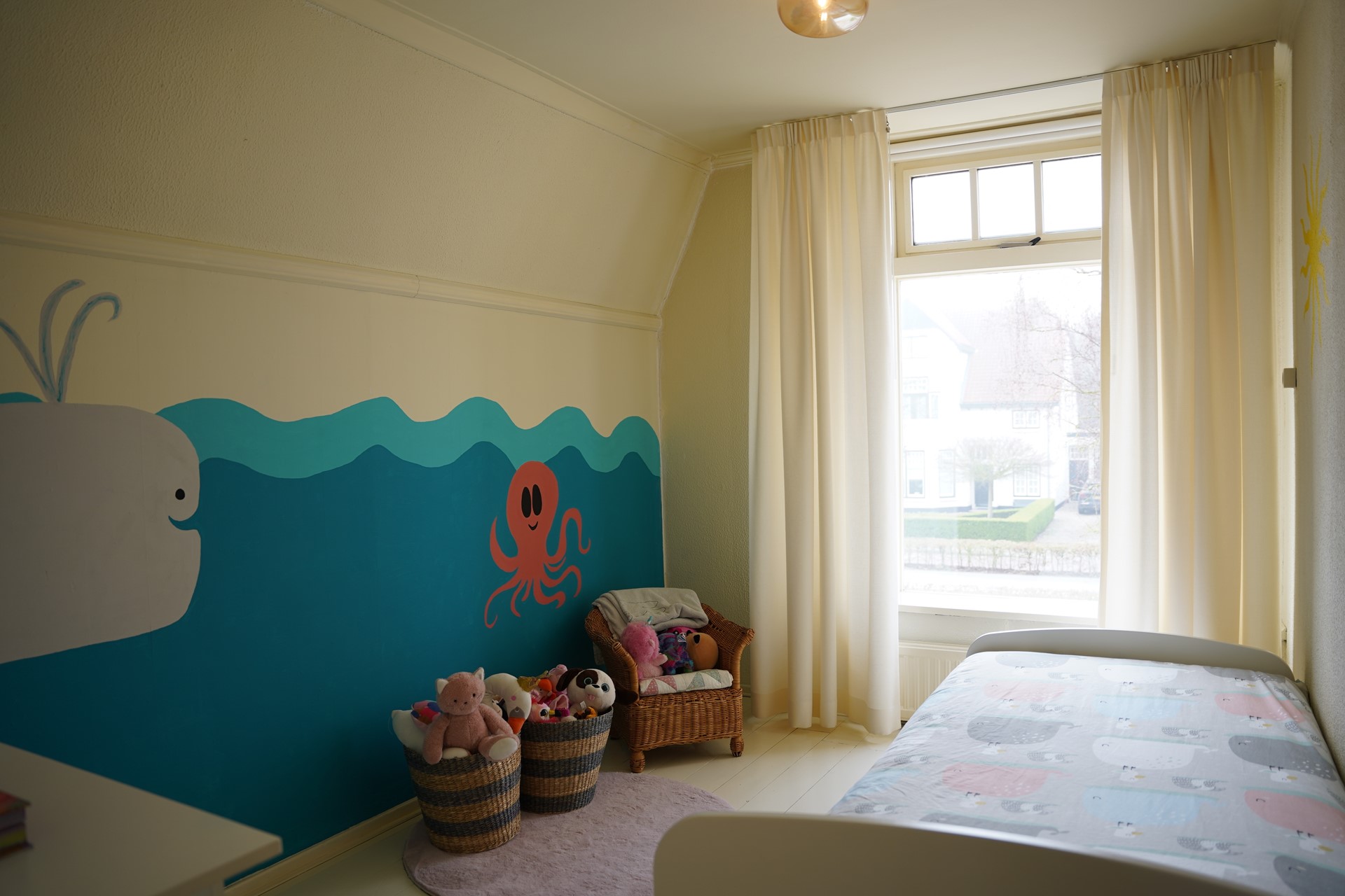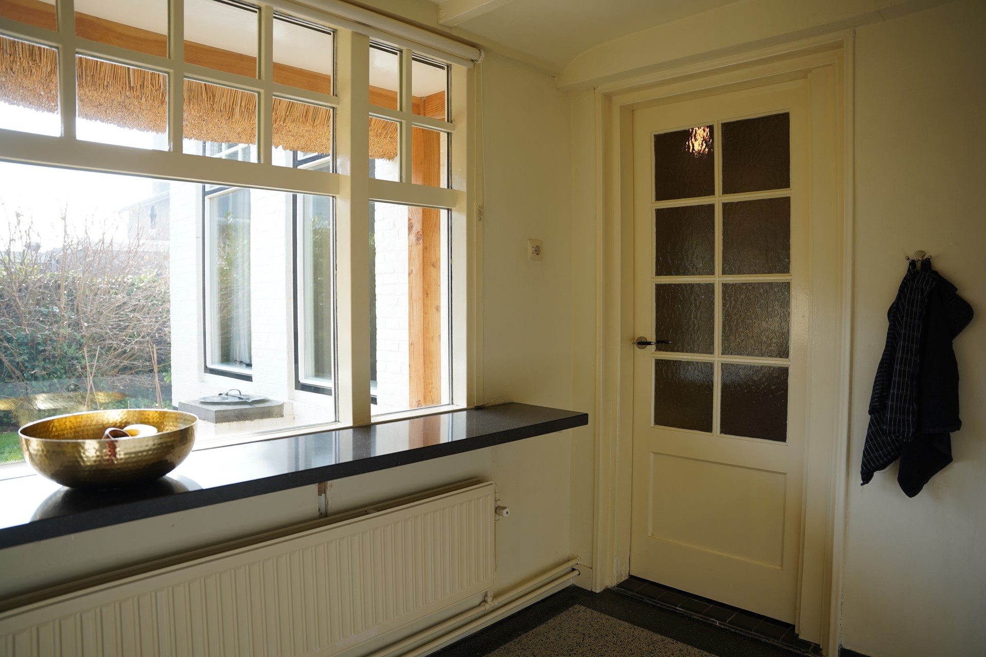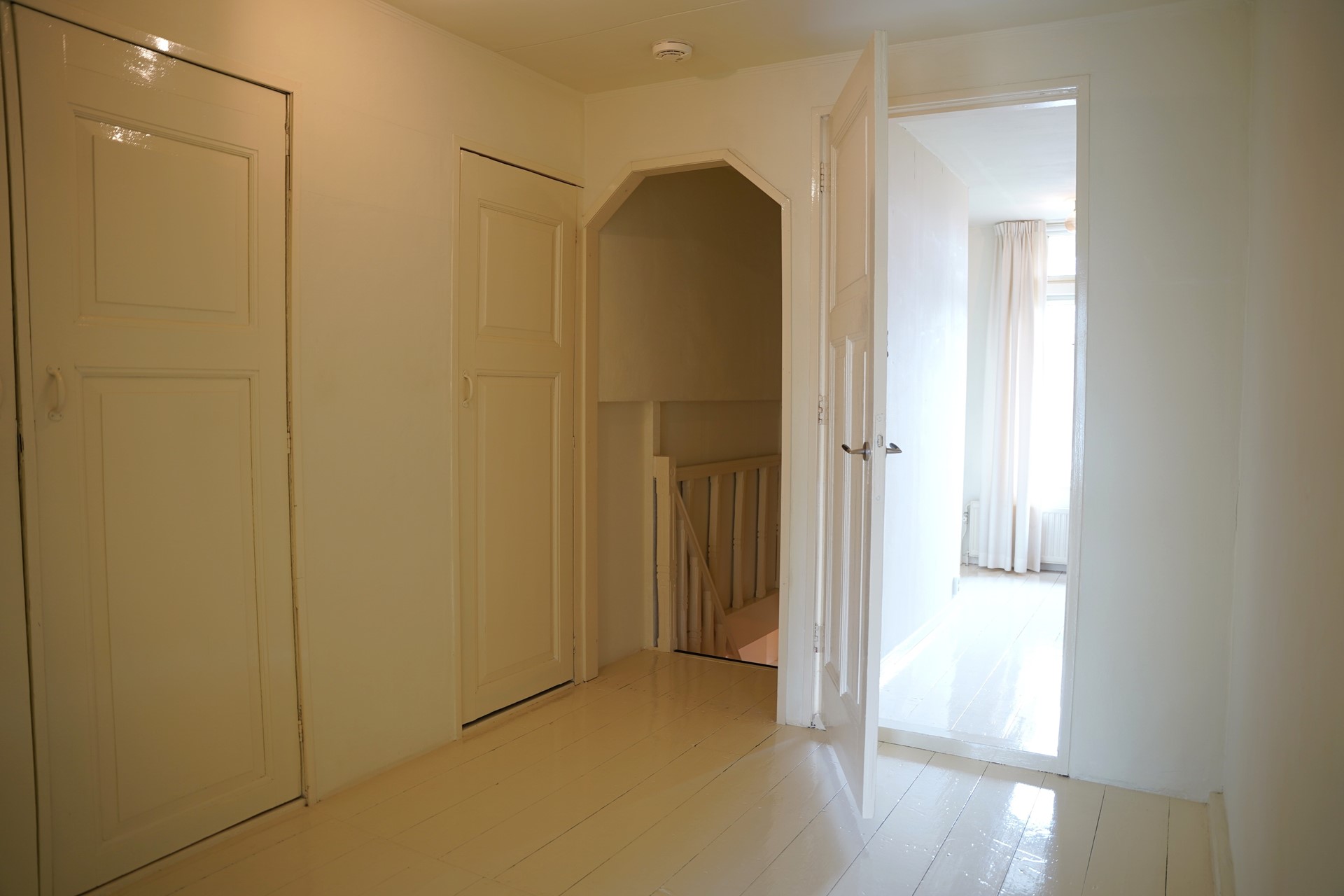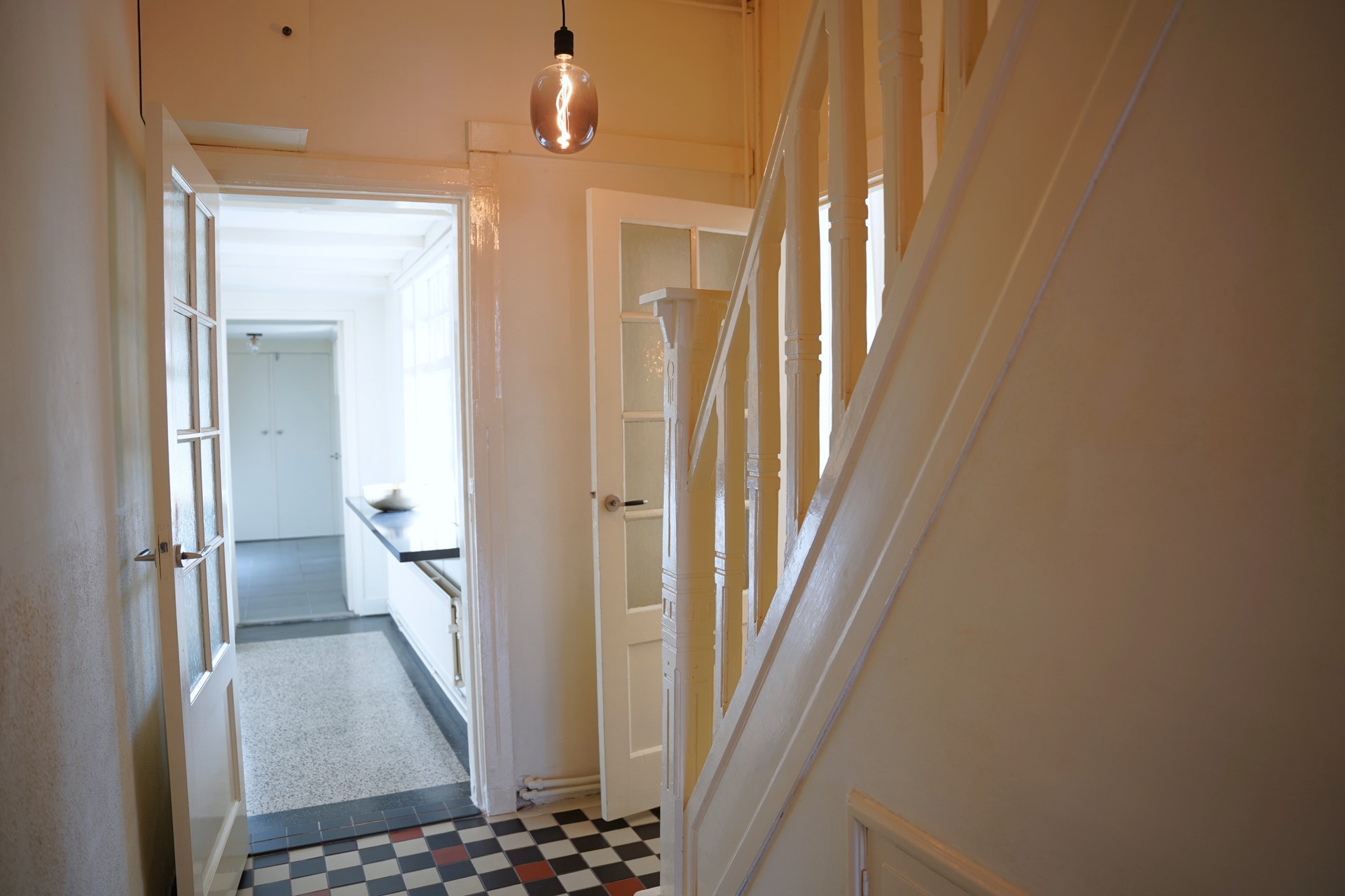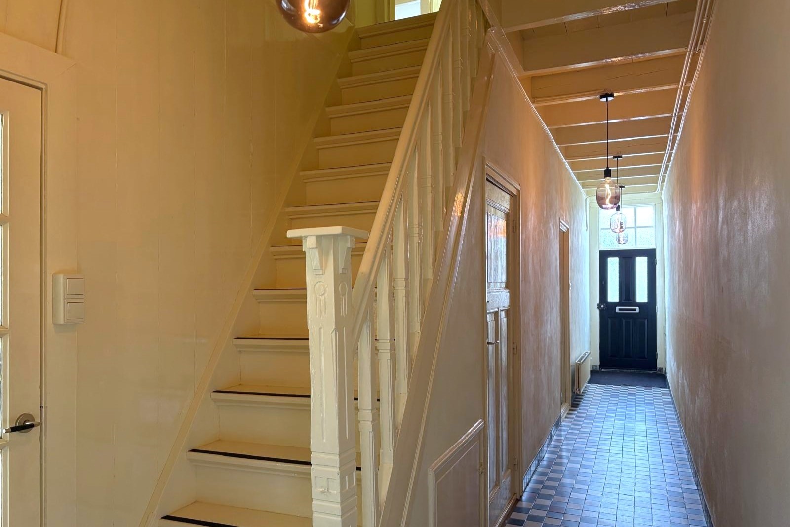 Via de voordeur stap je binnen in de lange gang die zich over vrijwel de volledige lengte van de woning uitstrekt. Deze gang vormt het hart van het huis en laat direct de authentieke sfeer zien. De fraaie statige trap en het hoge plafond geven het geheel een charmante en klassieke uitstraling. De voormalige ensuite woonkamer is een prachtige leefruimte met hoge raampartijen en veel daglicht. De houten vloerdelen en de originele elementen zorgen voor een warme sfeer, terwijl vaste kasten voor praktische bergruimte zorgen. Aan de achterzijde bevindt zich de moderne keuken, vernieuwd in 2019 en uitgerust met alle benodigde apparatuur. Aansluitend ligt de praktische bijkeuken met garderobe, hangtoilet met fonteintje en aansluitingen voor wasmachine en droger. Ook vind je hier een bergkast en de opstelling van de cv-ketel. Daarnaast beschikt de woning over een kelder die extra bergruimte biedt.